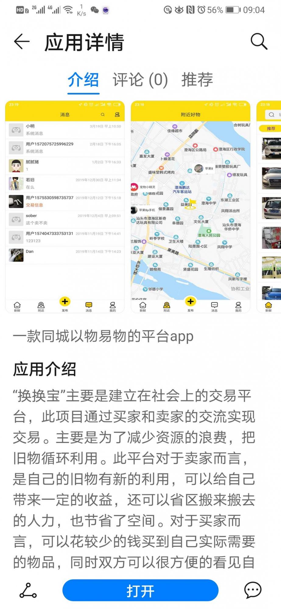 一、“换换宝”是由广东省汕头市德威软件科技有限公司自主研发的一款二手交易平台,主要是建立在移动网络上的公平、互信交易平台,此平台通过买家和卖家的直接交流实现交易。目的主要是为了减少资源的浪费,旧物可循环利用。此平台对于卖家而言,使自己的旧物有新的利用价值,可以给自己带来一定的收益;也可以免费赠送他人,以帮助有需要的人士,给自己带来帮助他人的快乐;还可以省去搬来搬去的人力费用,也节省了自己的家庭空间。对于买家而言,可以用较少的费用,很方便的买到自己实际需要的物品。买卖双方可以很方便的看到自己的交易信息,平台里面内带地图,可以查看双方的地址及路程,大大的方便了双方交易,这样就有效的杜绝了虚假信息,让双方更加真诚的进行交流、交易。经买卖双方通过本平台沟通好交易事宜后,再自行线下进行交易,交易费用无需再经过本平台,所以请买卖双方务必先在本平台上沟通协商好,作为交易证据后,再进行线下交易。本平台只是免费给大家提供方便,所以不承担因双方交易而产生的任何纠纷责任。所以请买卖双方,在线下交易时务必谨慎小心。使用本平台必须实名认证注册认证,不得从事任何违法行为,否则一切后果自负。