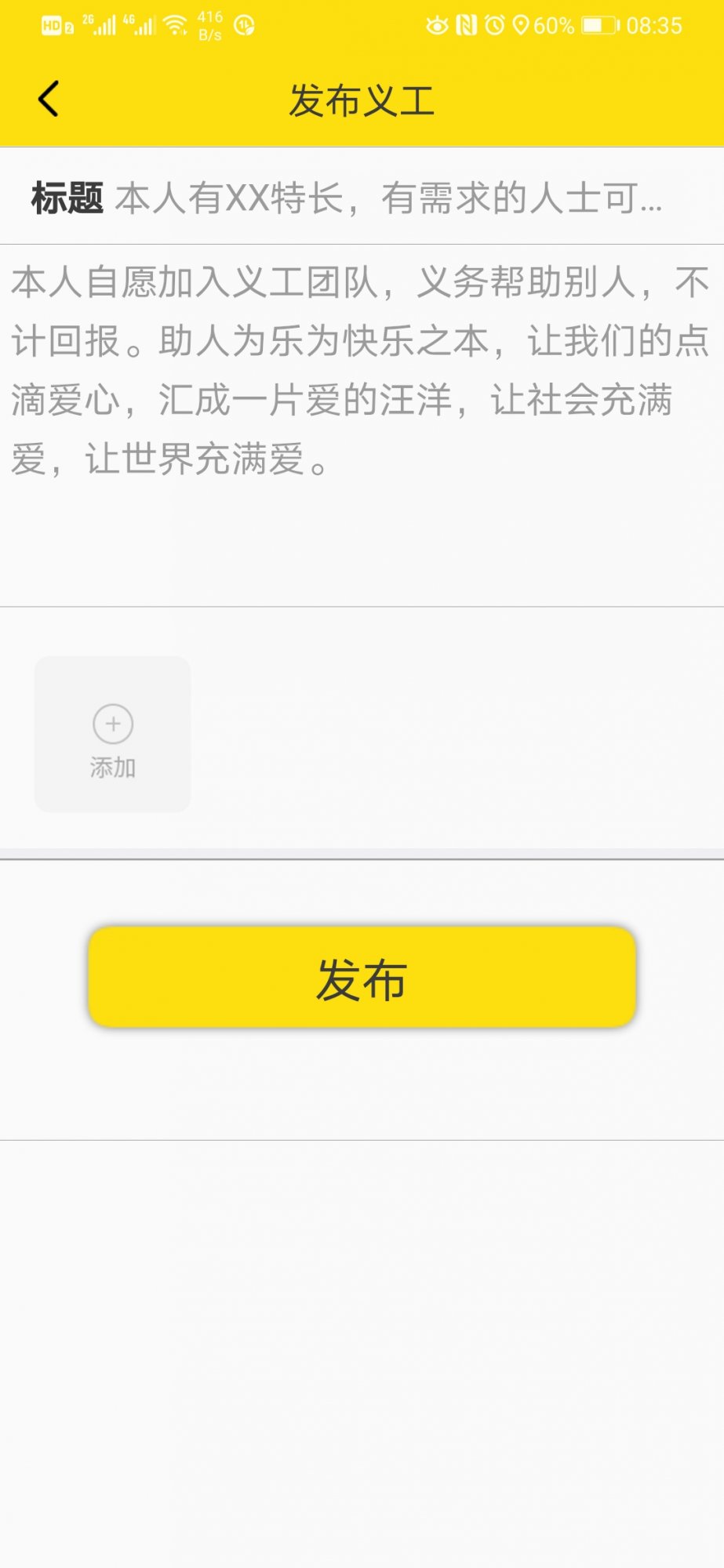 5:义工:此功能是给有爱心的人士,发起义务帮助他人的信息,以号召更多有爱心的人士,一起来帮助别人,让这个社会充满爱心,更加和谐。秉承“我为人人,人人为我”的理念。
