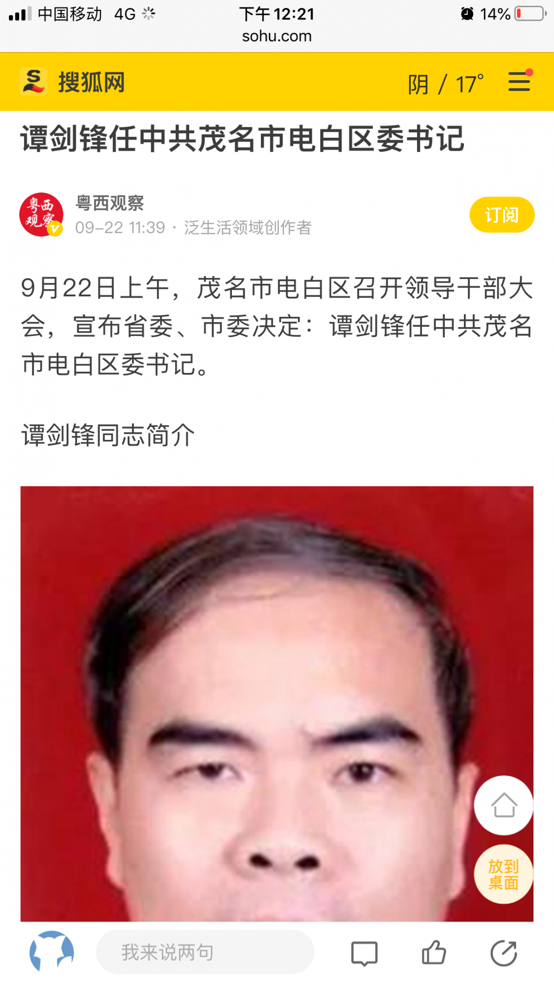 梅菜扣肉 副教授 注册 2017-10-05 消息 2,074 反馈评分 151 点数 101 所在地 电白水东 2020-09-23 #50 刚刚打开茂名发布公众号看,确实是删了。。电白区新闻中心公众号“今日电白”昨天发布的也删除了。奇了怪了。