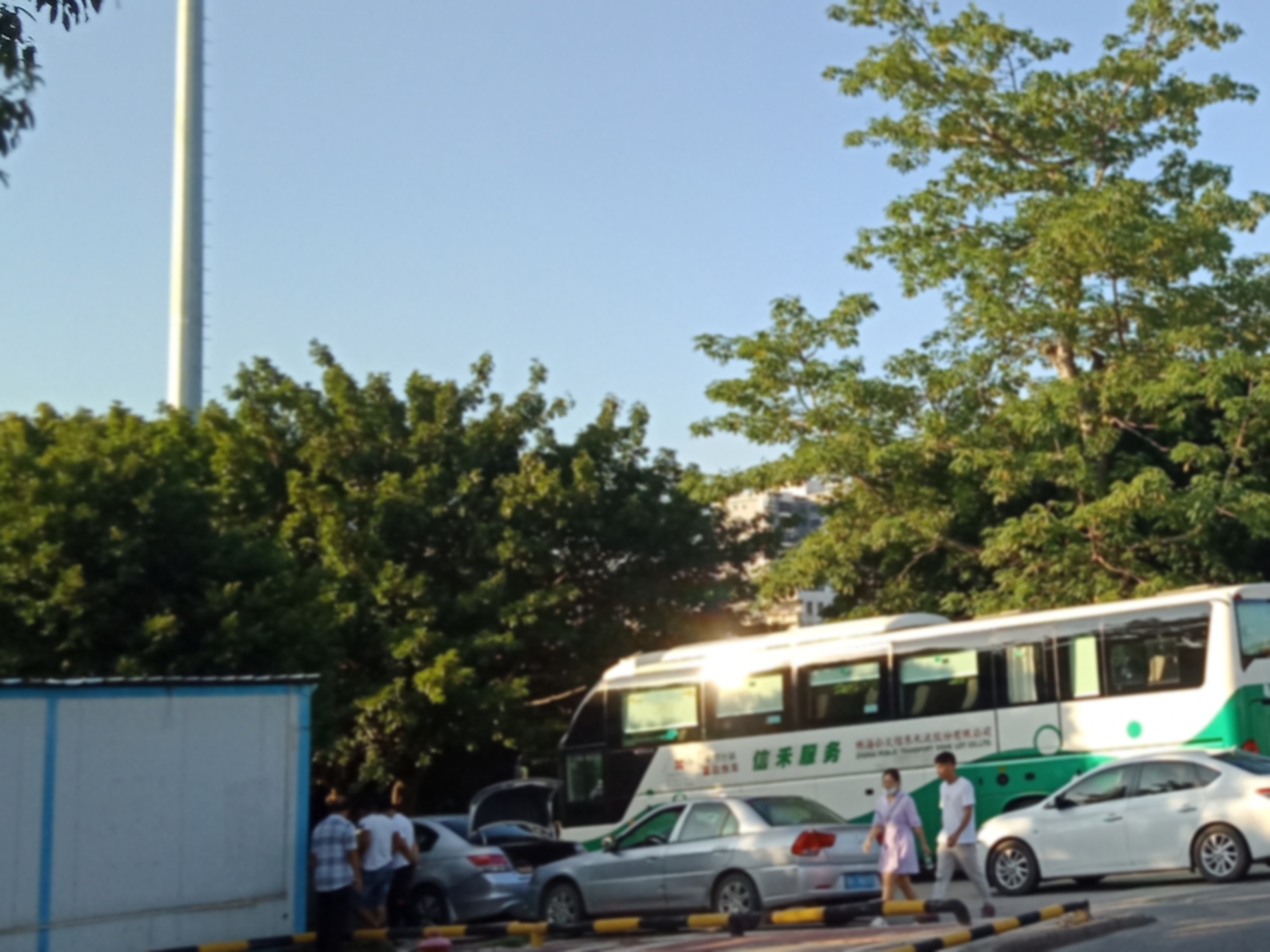 虽各路口有公交人员在现场维持疏导交通,车流量较大,也只能龟速运行与停停顿顿,就算旅游大巴也只能龟行