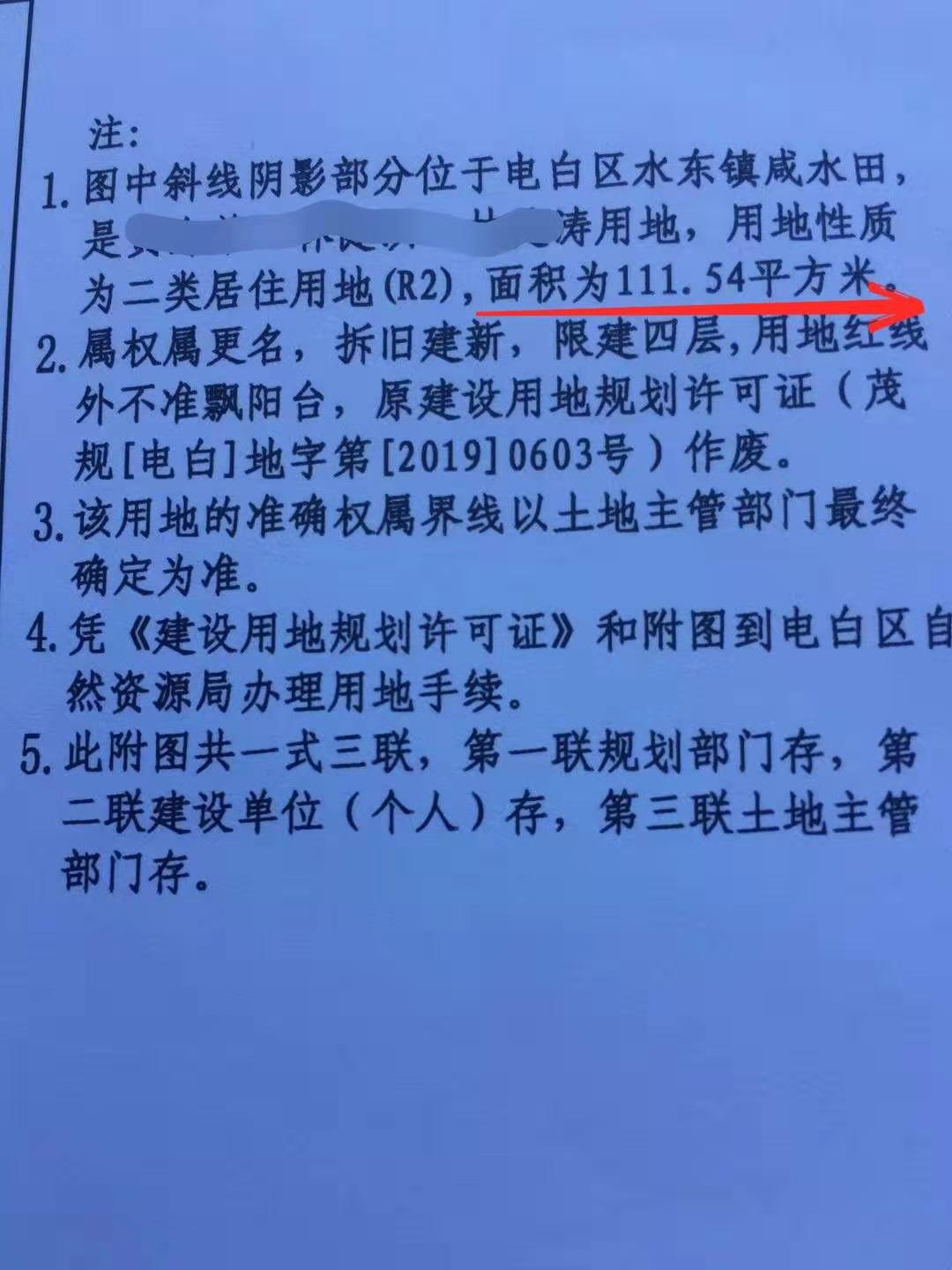 三、规划局,第一次贴告示报建为111.54平方米