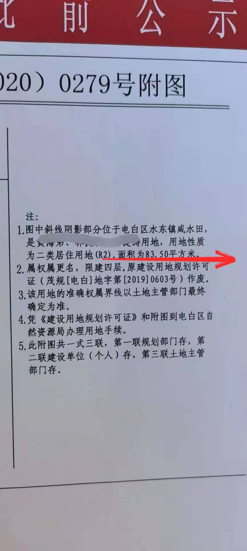 第二次贴告示报建为83.5平方米
