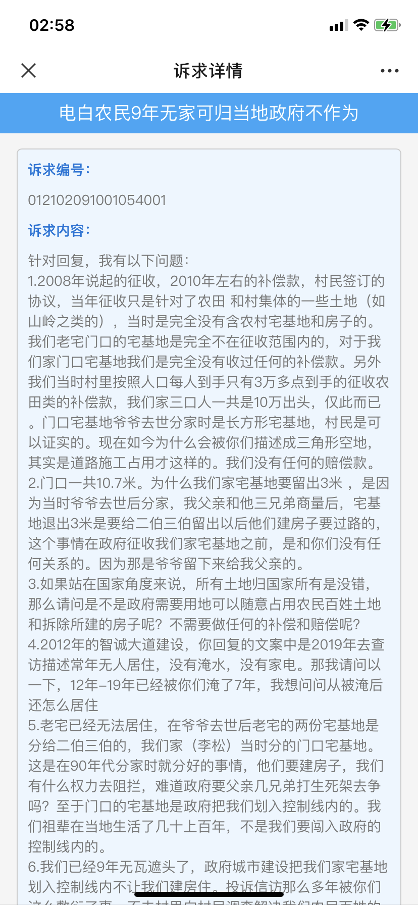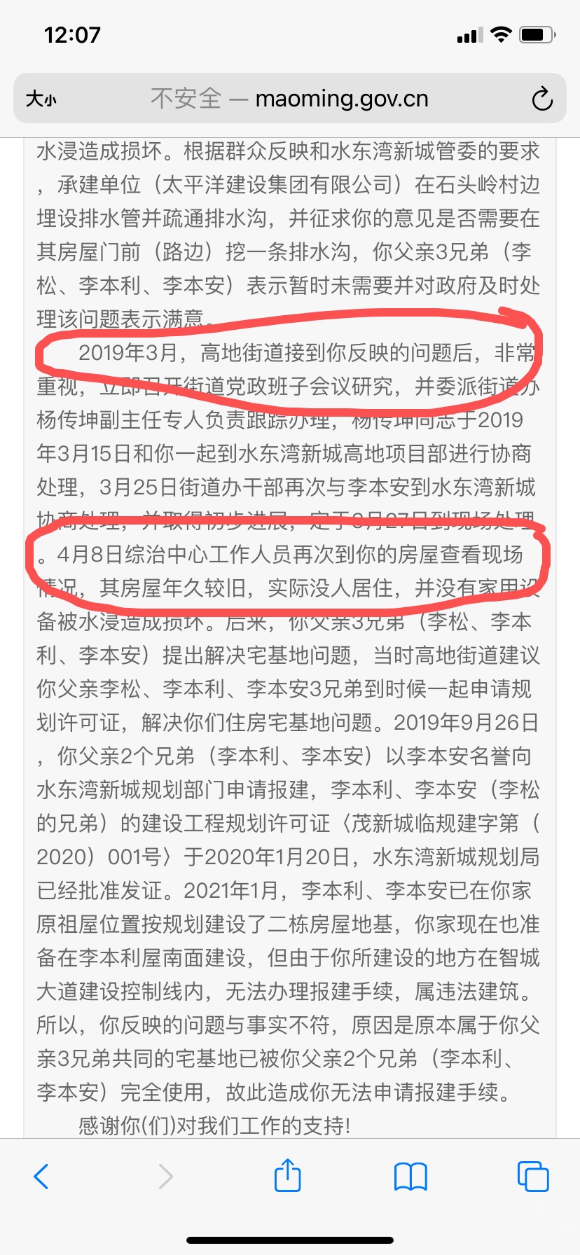 我看到以下电白区政府,电白区高地街道办的信访回复,心情复杂,难以入睡