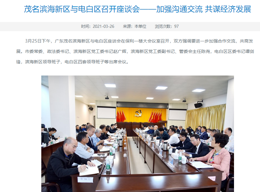 茂名滨海新区与电白区召开座谈会——加强沟通交流 共谋经济发展