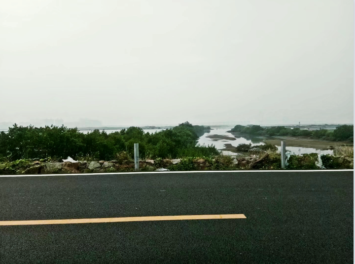 从大桥下拍到的大洲岛周边的天然红树林,没有红树林的水域应该是深水港,海水浑浊。