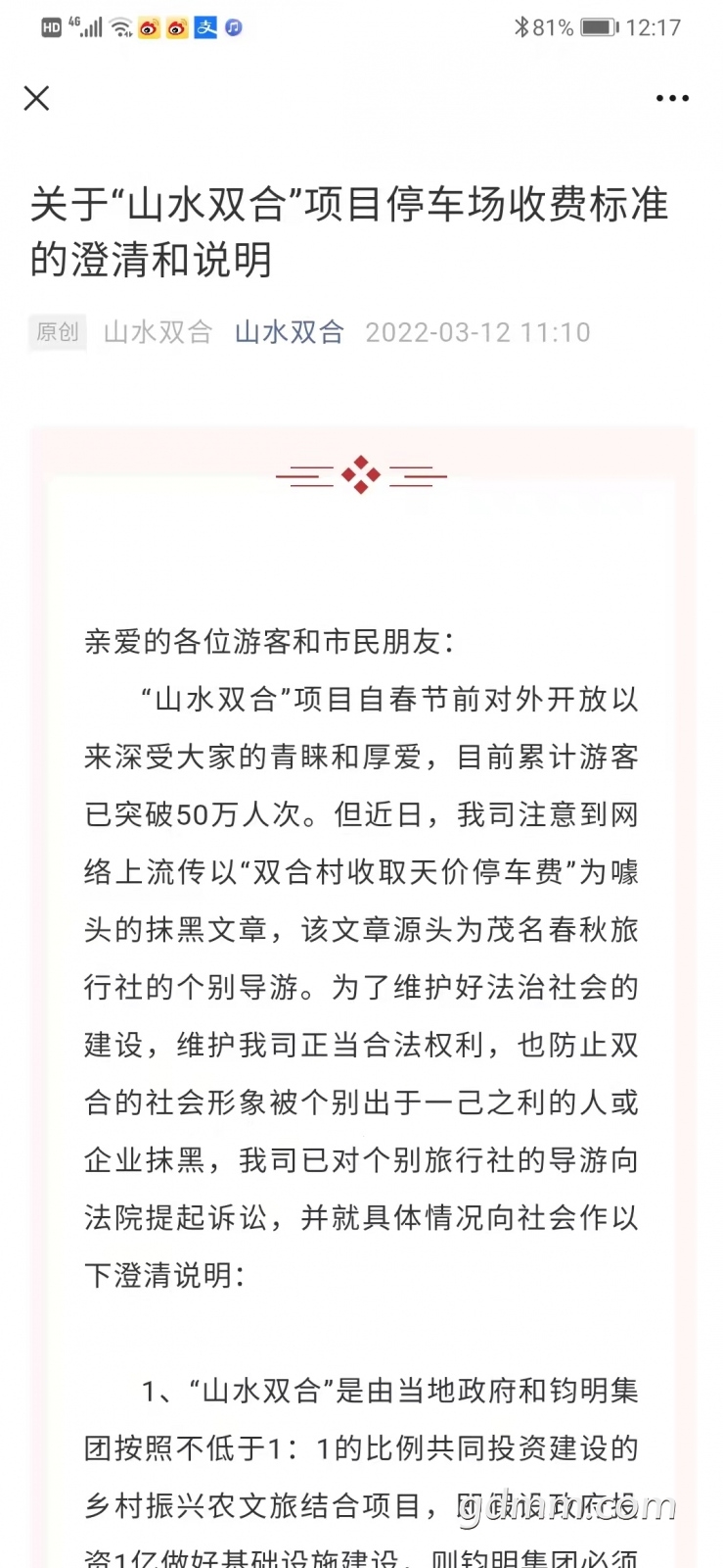 讨论 关于网红旅游点双合村的停车费纠纷问题