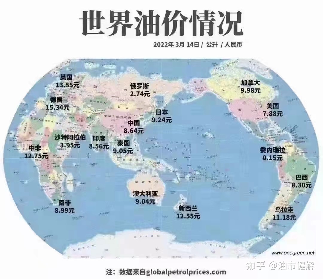 这是一份2018年的数据,虽然时间有点远,但是油价的排名基本上是一致的。