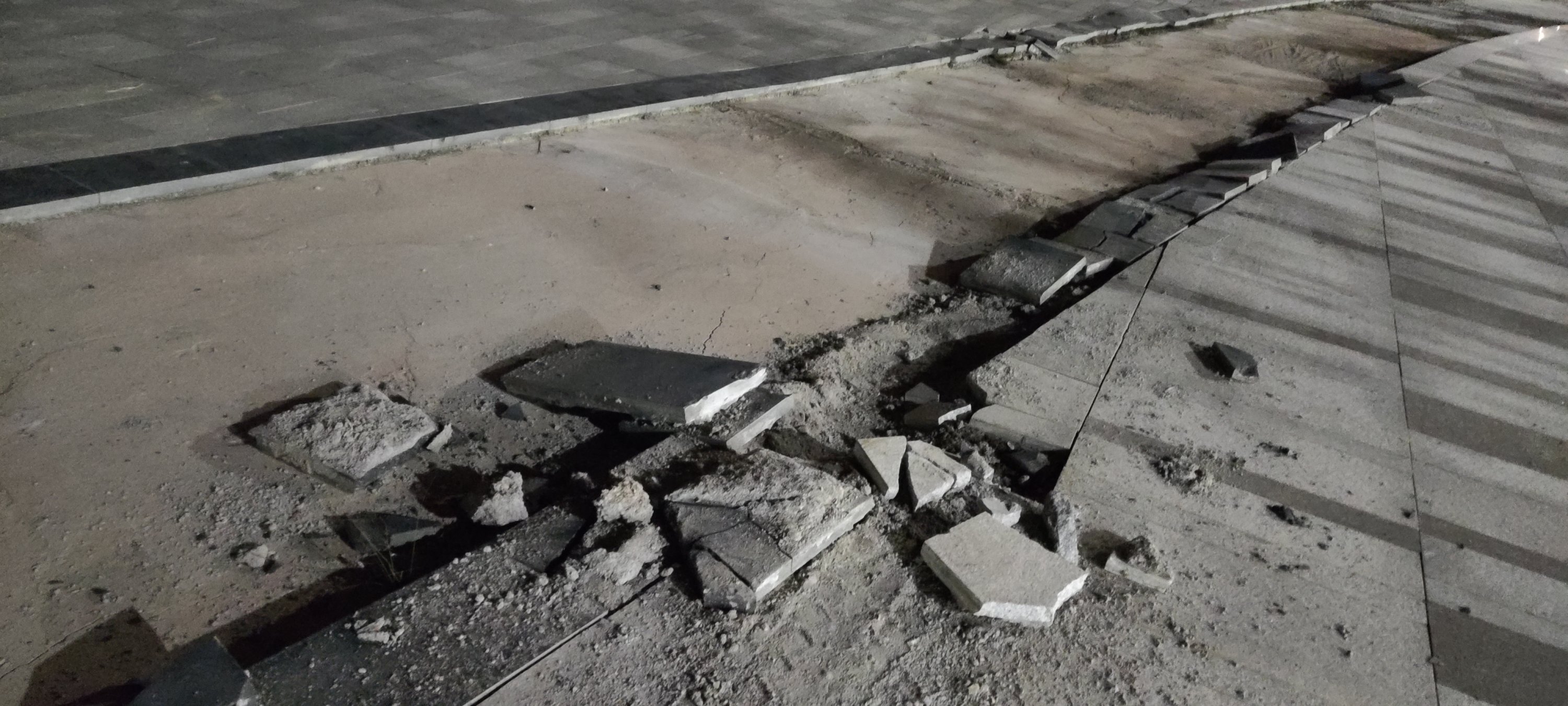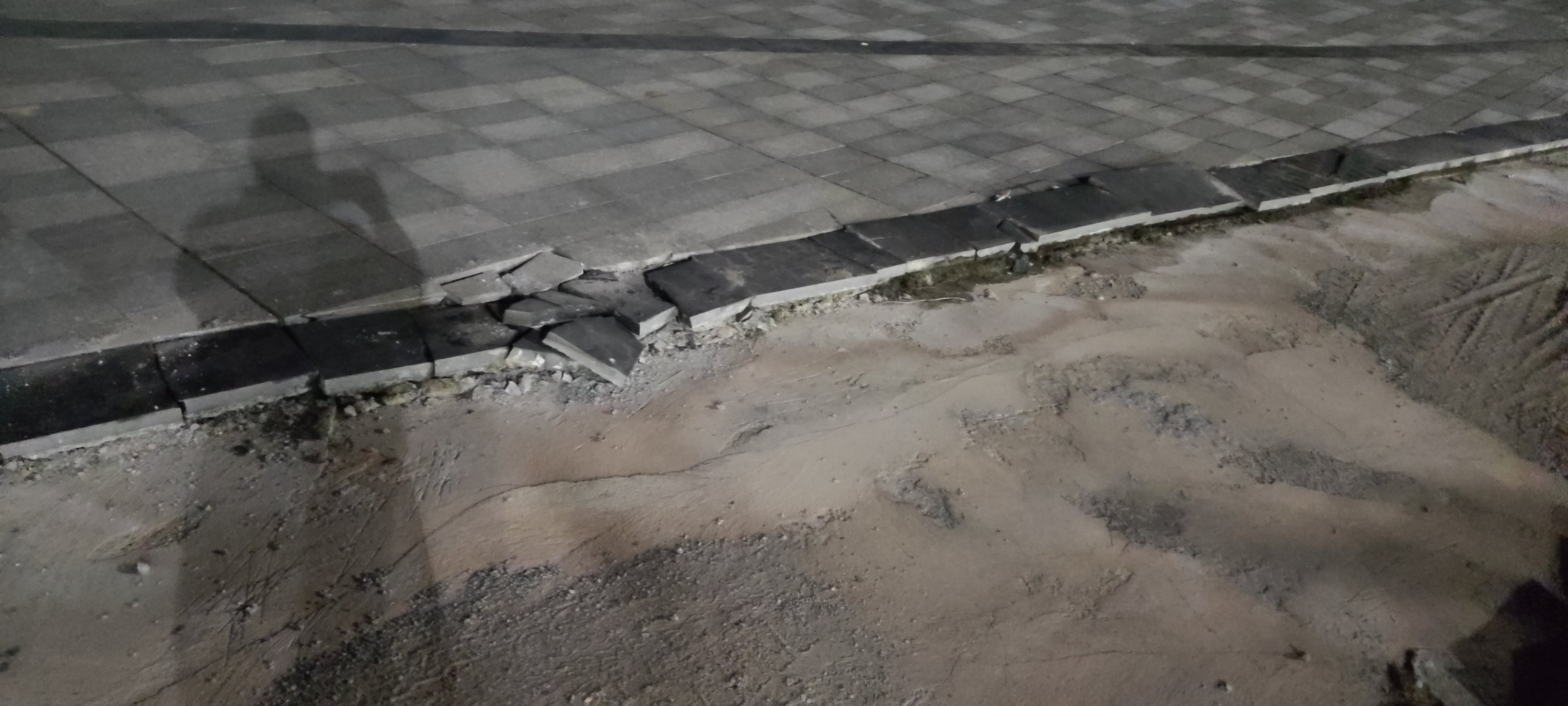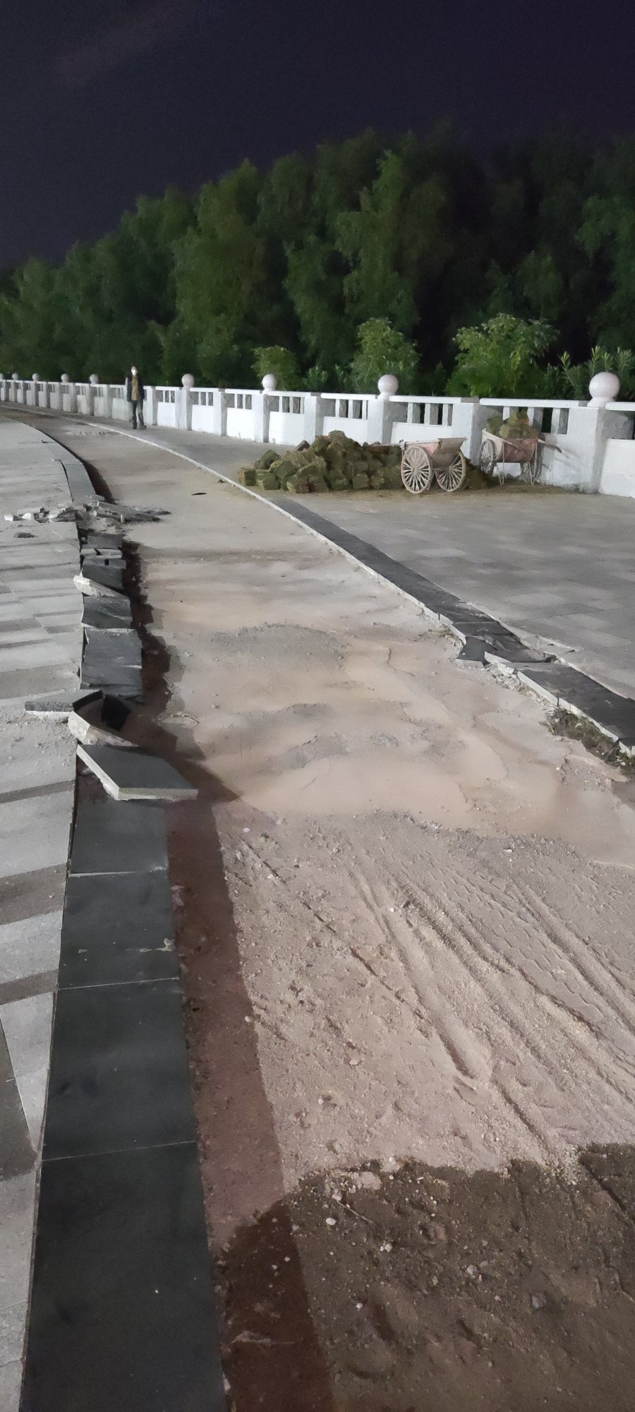 海堤路财富盛世旁的湿地公园,石板砖铺上没几天,就被野蛮施工的载重汽车碾碎了!