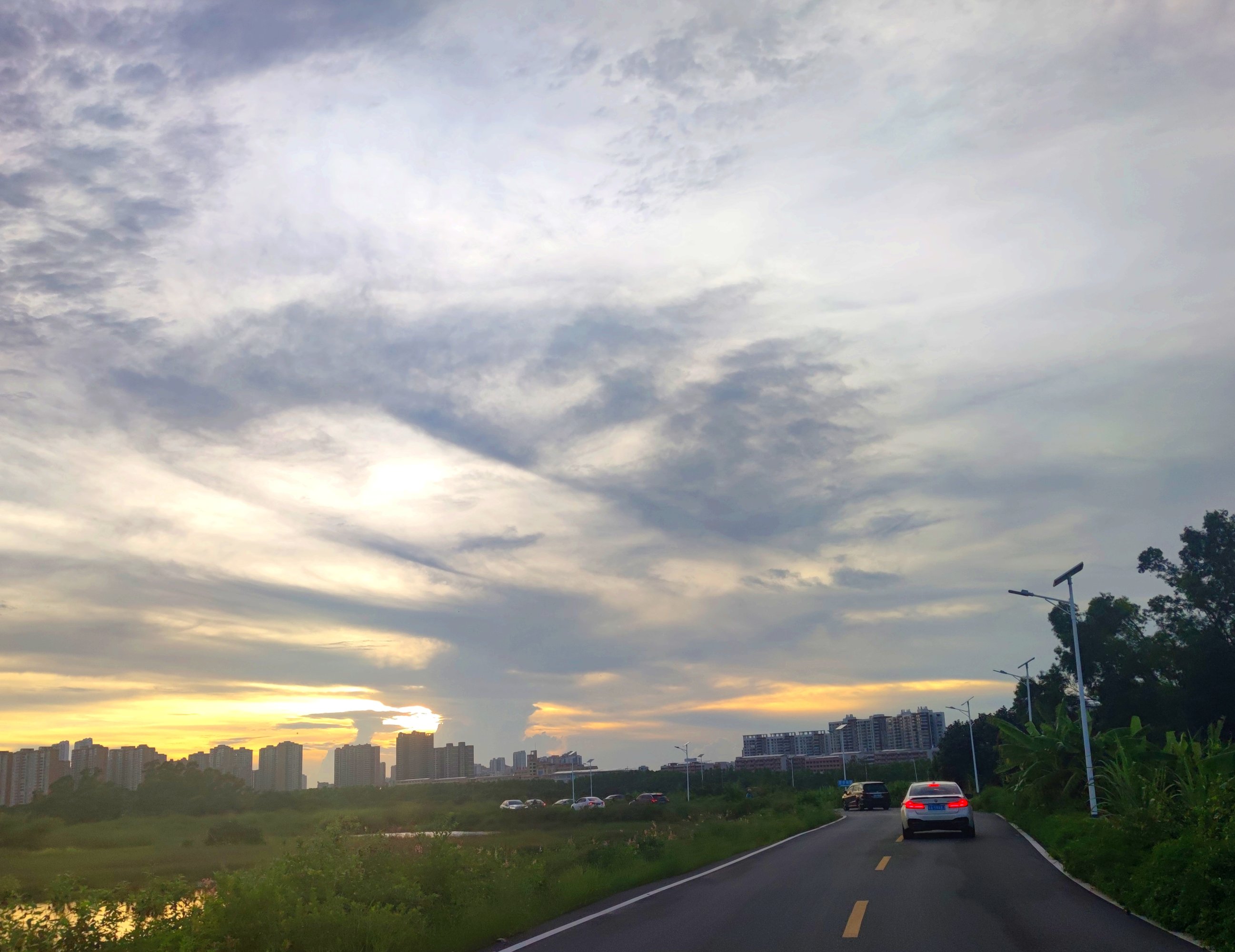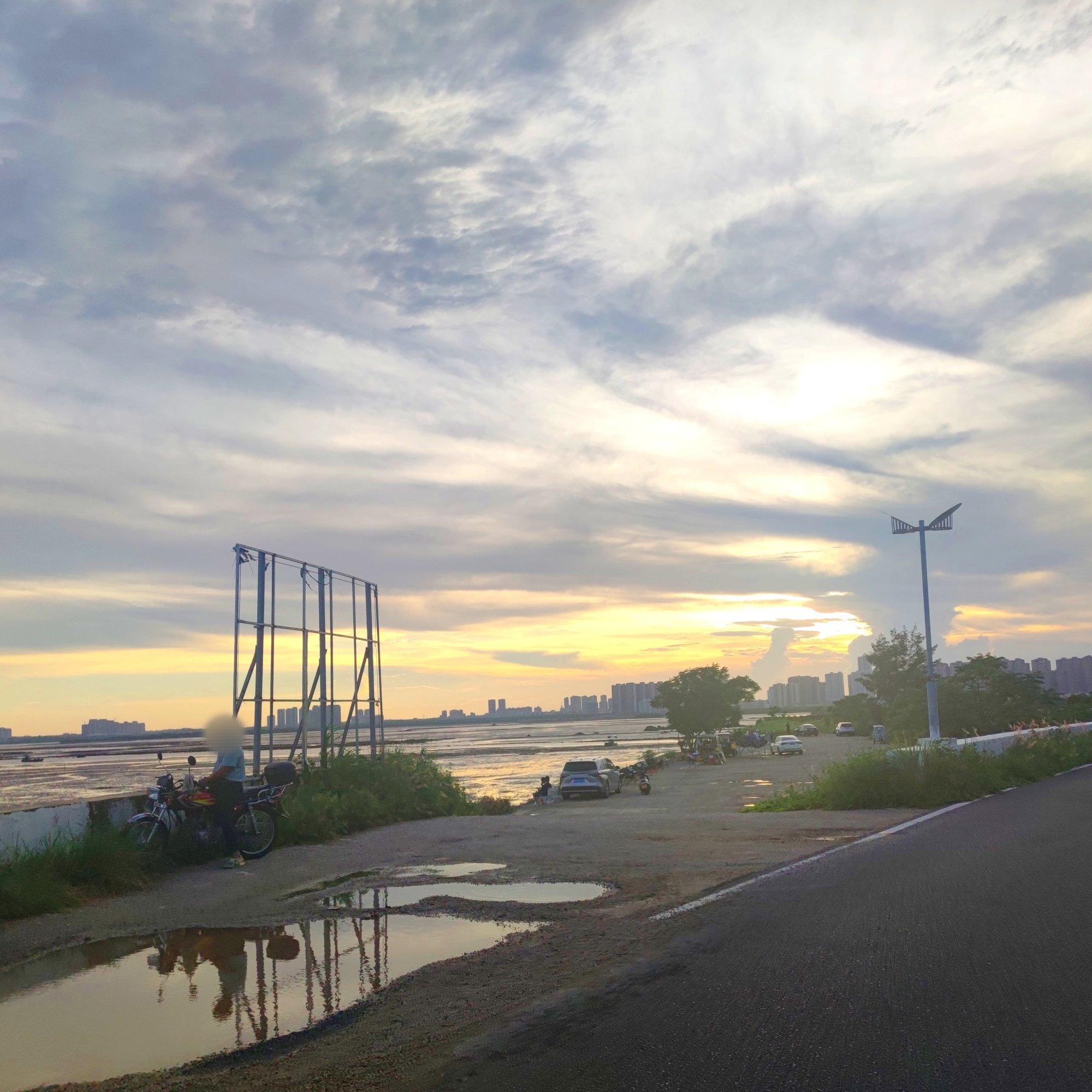 分享 骑行于环湾路~沿海便道一堤围上远看的晚霞~
