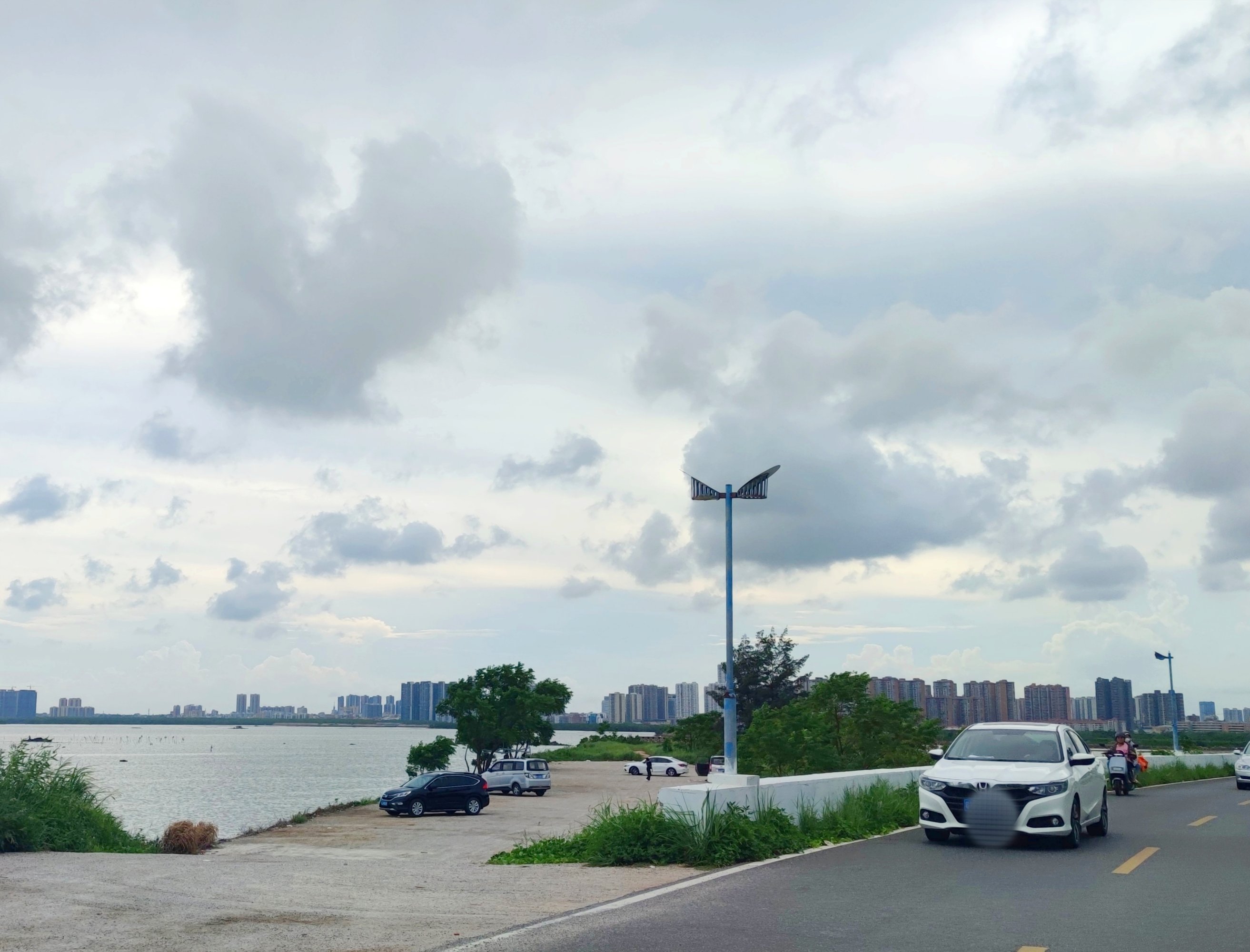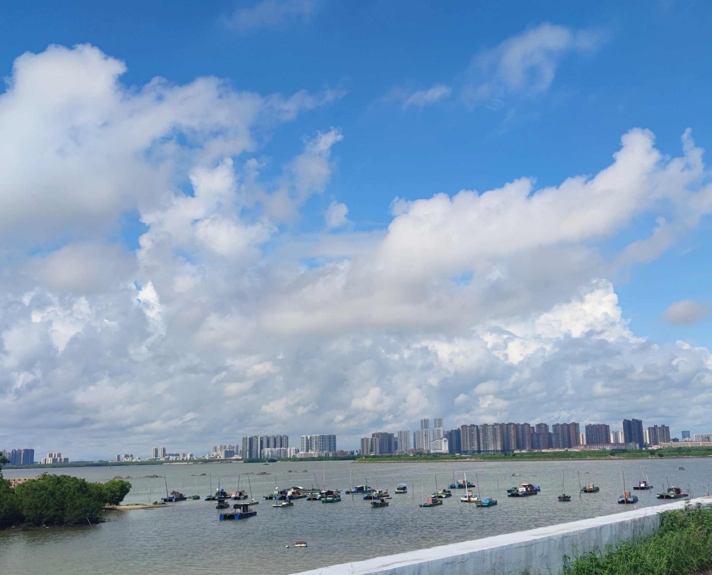 分享 骑行于环湾便道一侧港湾的堤围上潮起潮落…