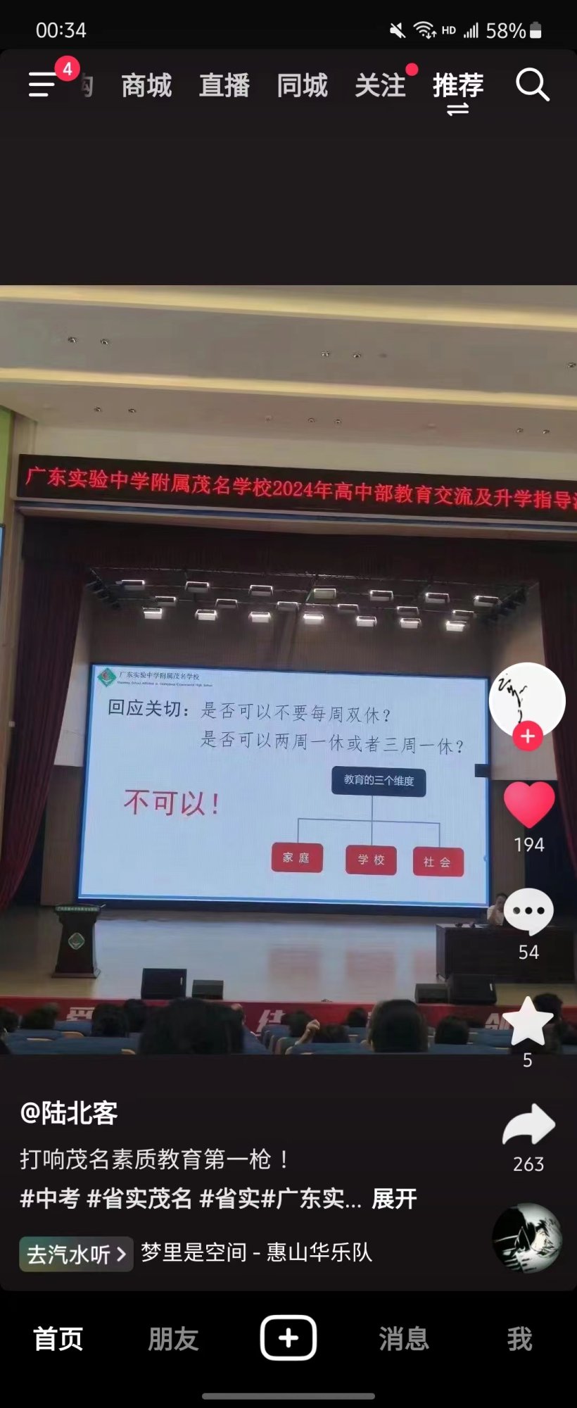 以茂名现在的教育资源,真的可以同时兼顾得了素质教育和教学质量?去了解下南京一中事件就知道了,所谓的素质教育,在中国推行的空间和条件非常受限,所以说效果如何,还是要打个问号。