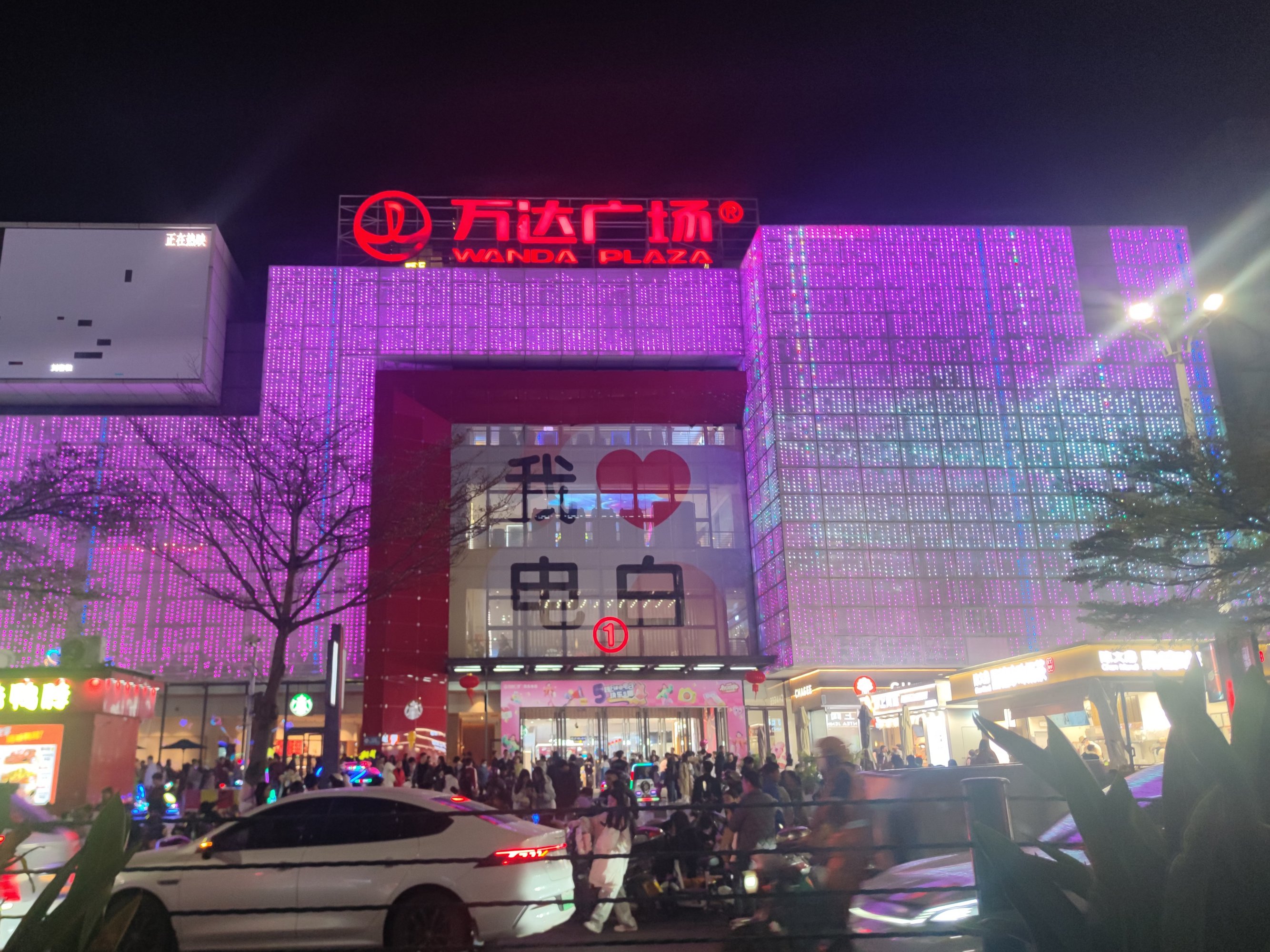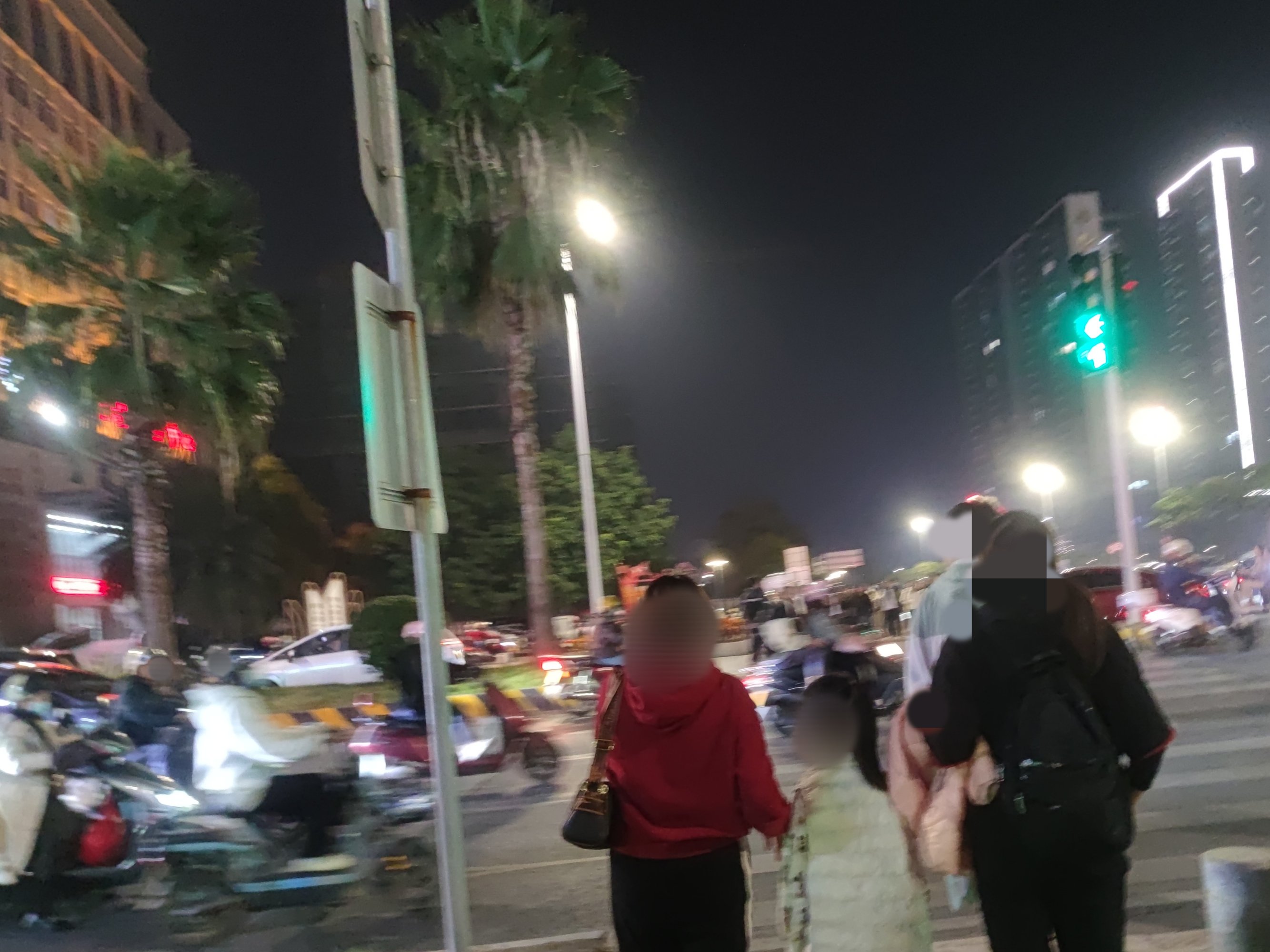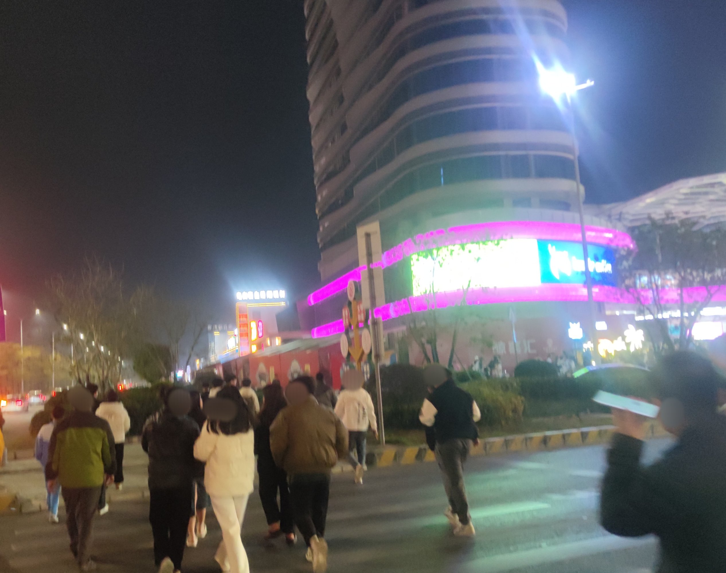 续下昨晚之迎宾路~后顺着向万达的凤凰大道方向走去,为拍1、2号门景,也就走过邮政、传湾新大地外围临街也挺多人,后走到对面加油站往回看,人行班马线人来人往~