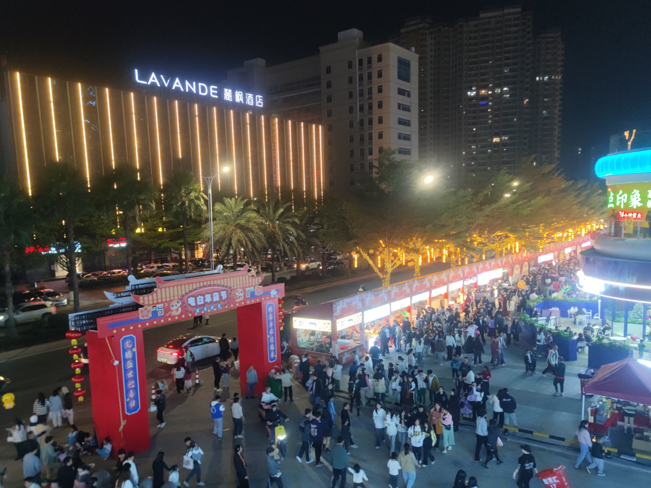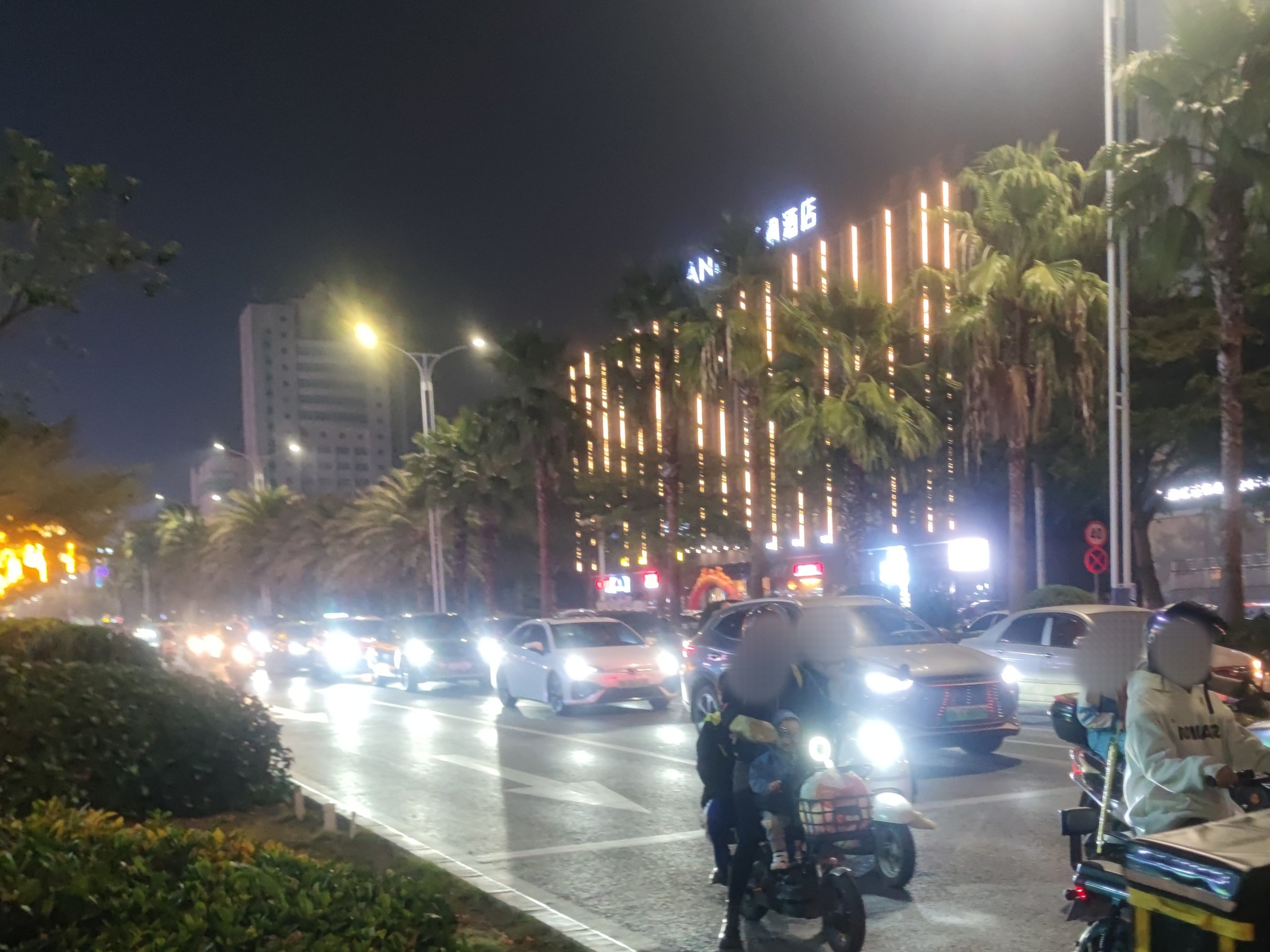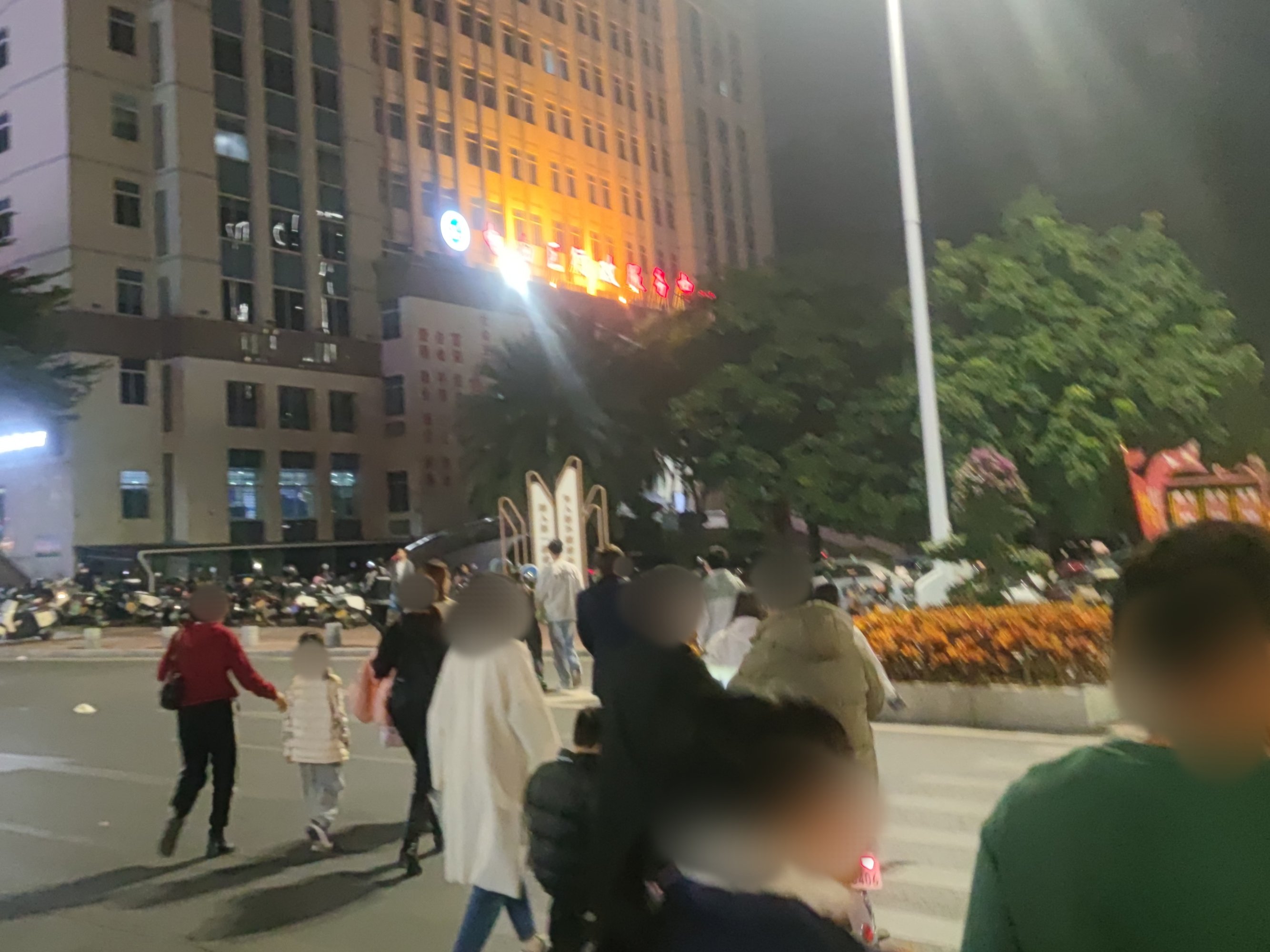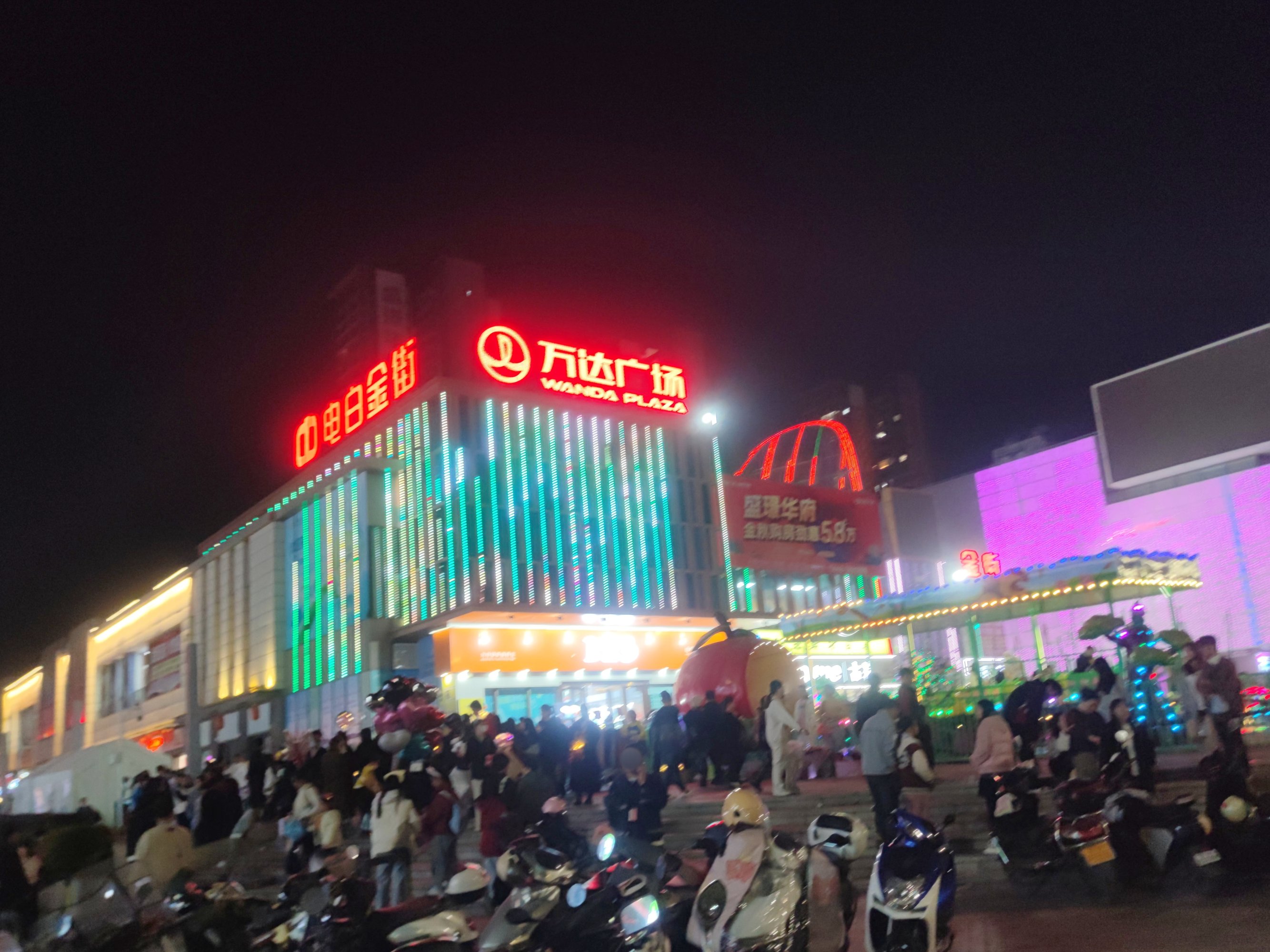 续下昨晚之迎宾路~后顺着向万达的凤凰大道方向走去,为拍1、2号门景,也就走过邮政、传湾新大地外围临街也挺多人,后走到对面加油站往回看,人行班马线人来人往~