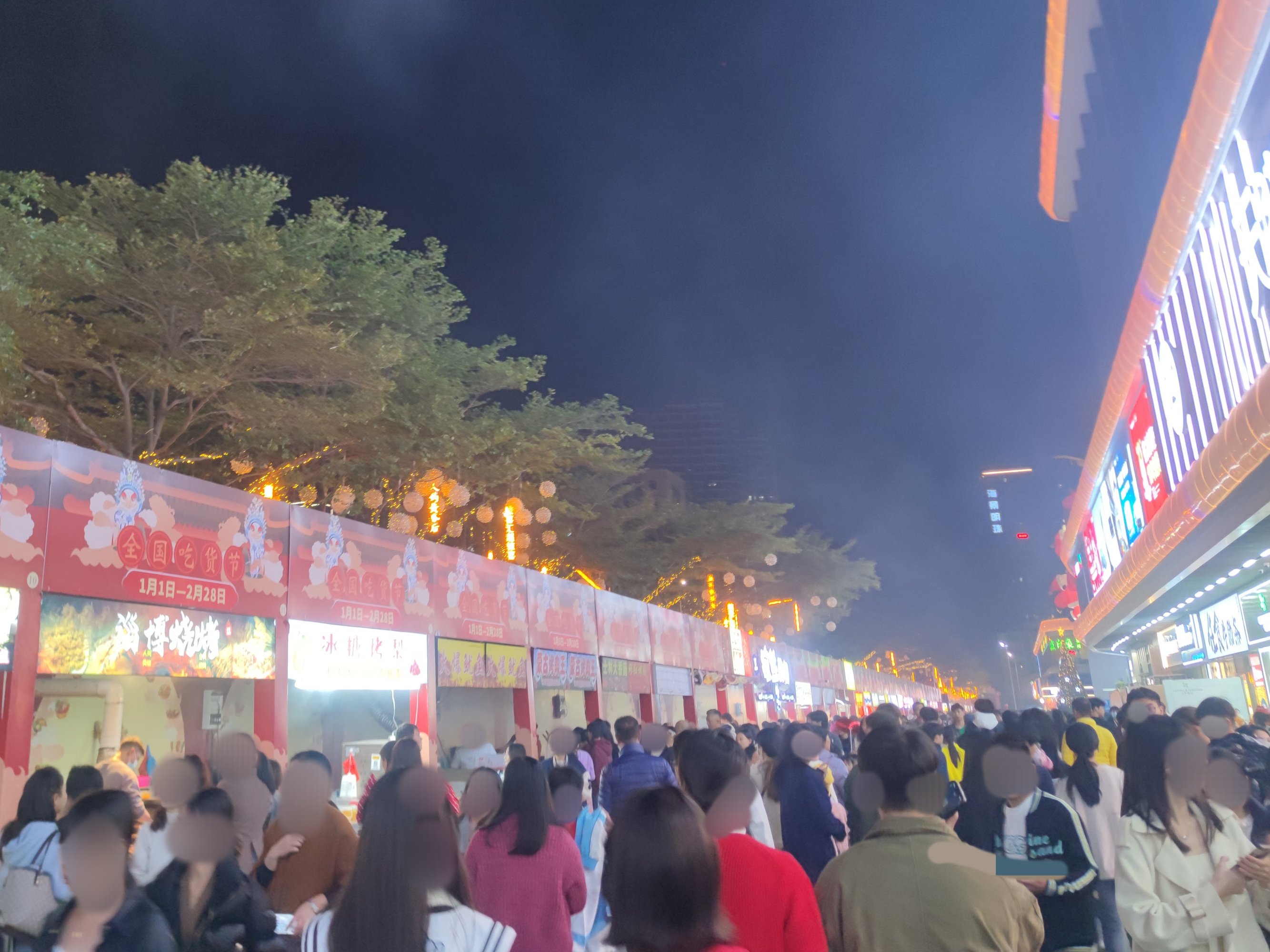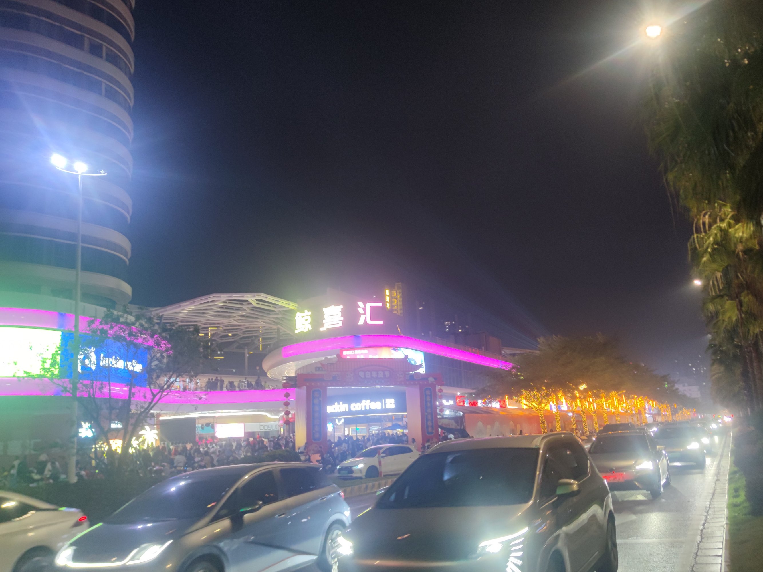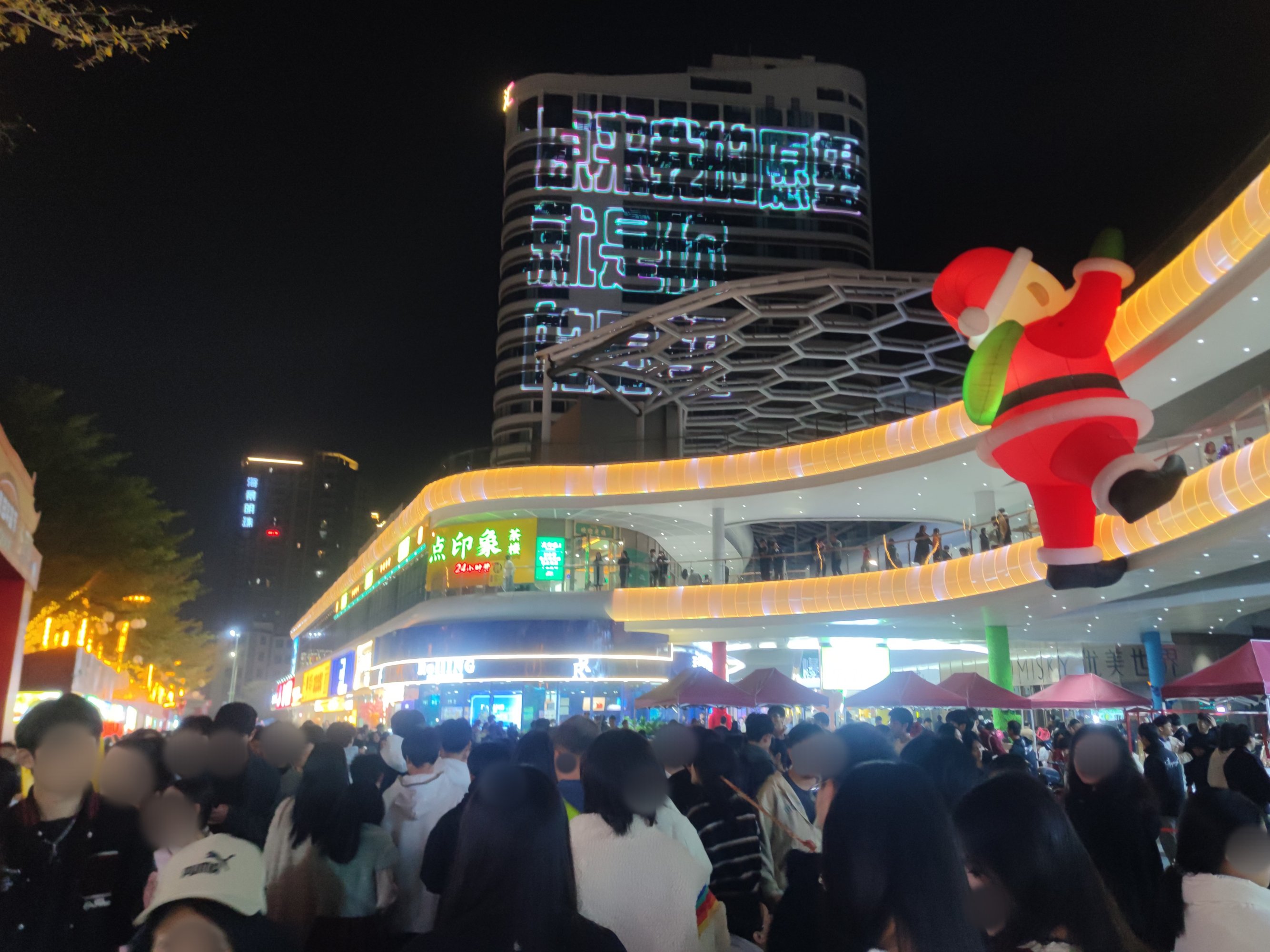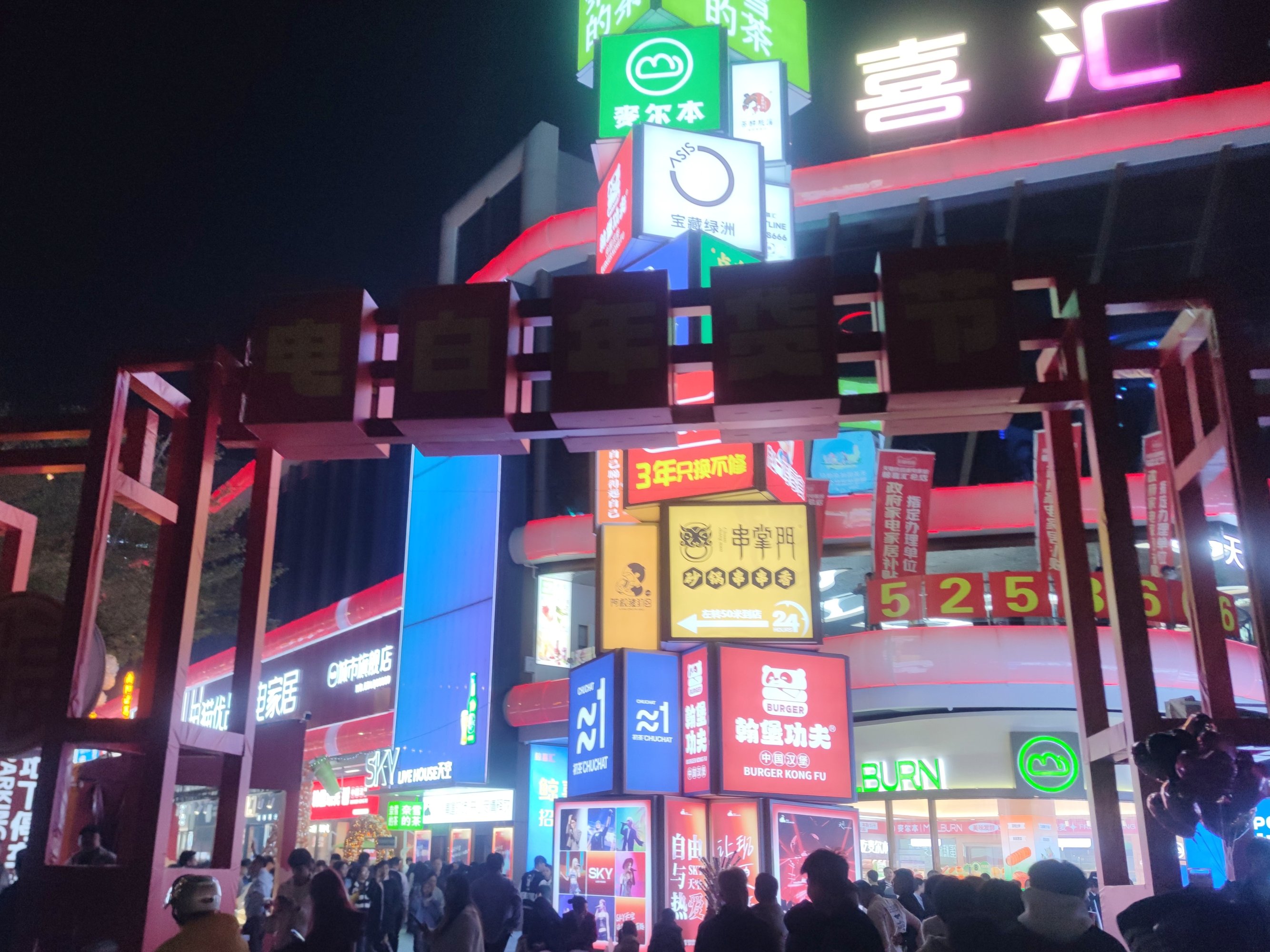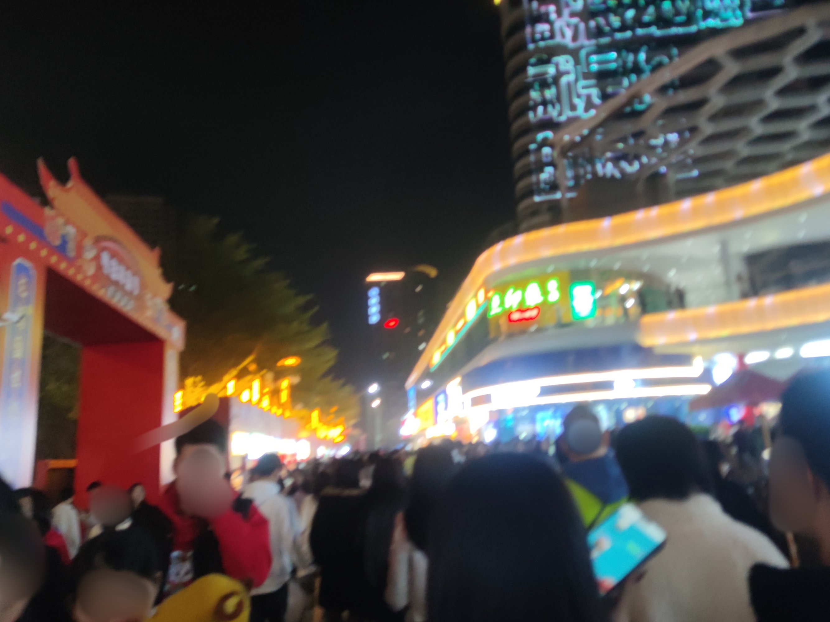 后又顺路返回经万达回到鲸喜汇处,而外围路街边,也有不少人在向水东大道行政中心方向走,我又想凑下拥挤的感觉,所以没走路肩,而是又混进人群中~里面的店铺,几乎都满座,有些只能等叫下号等~