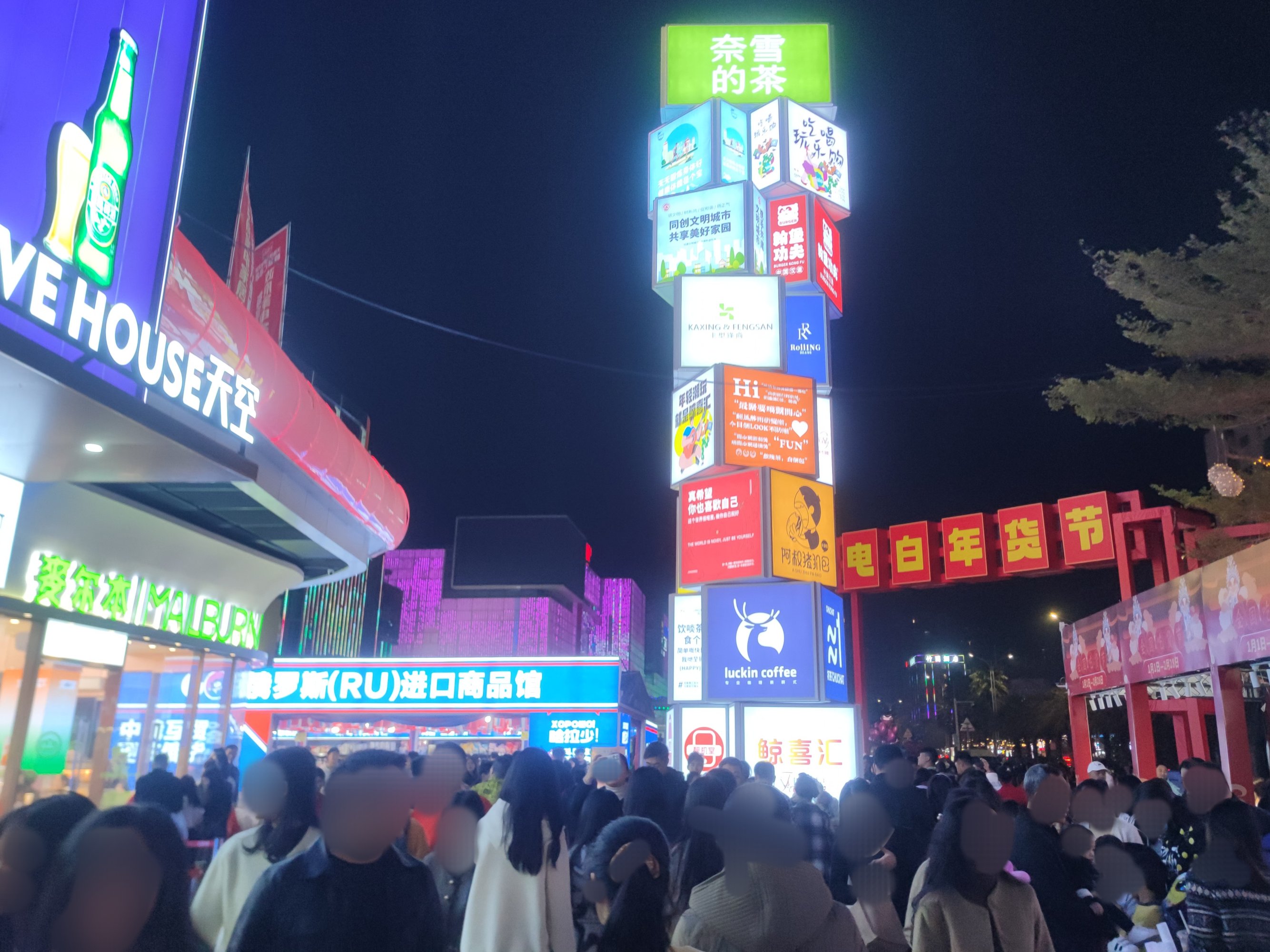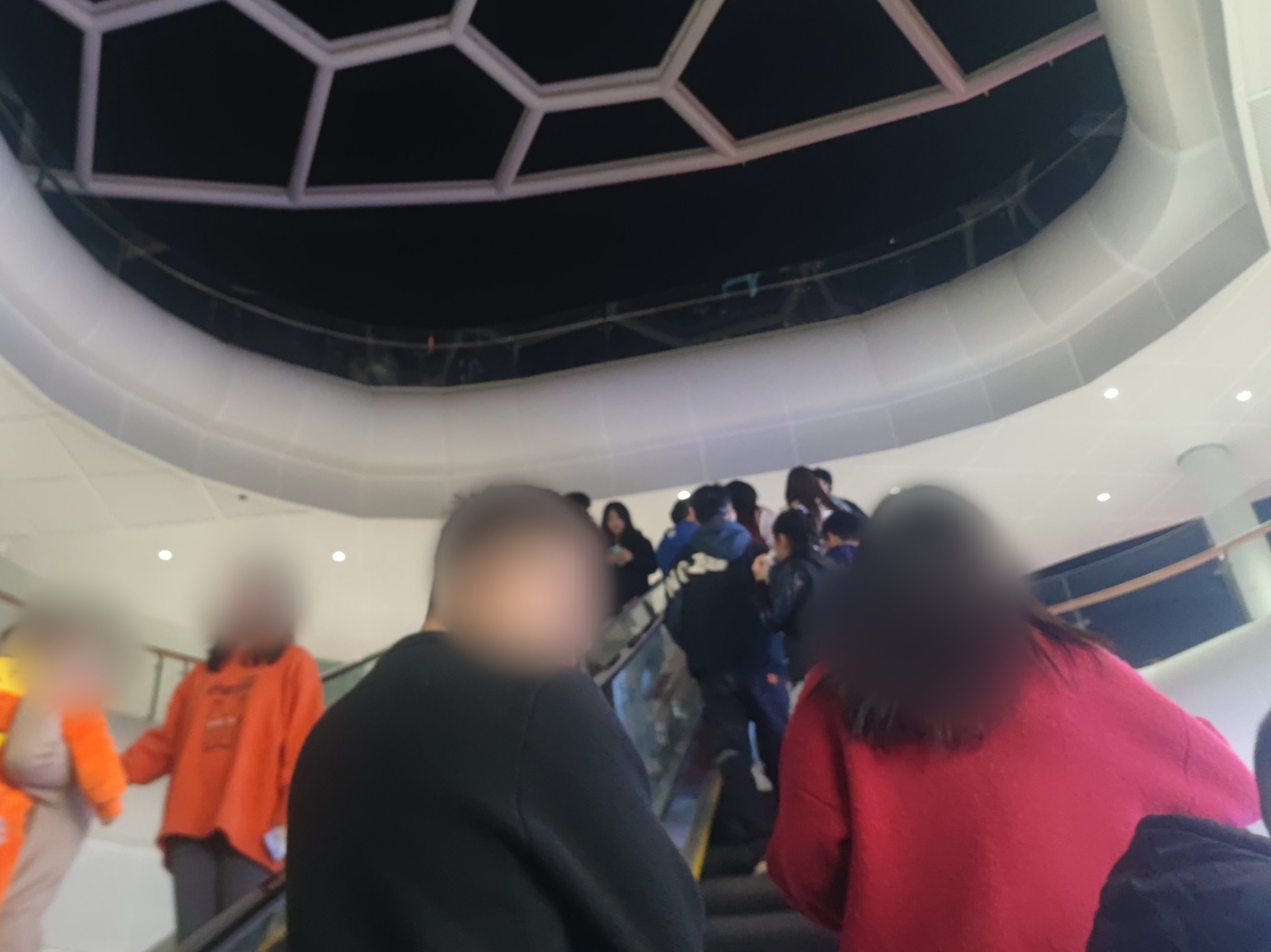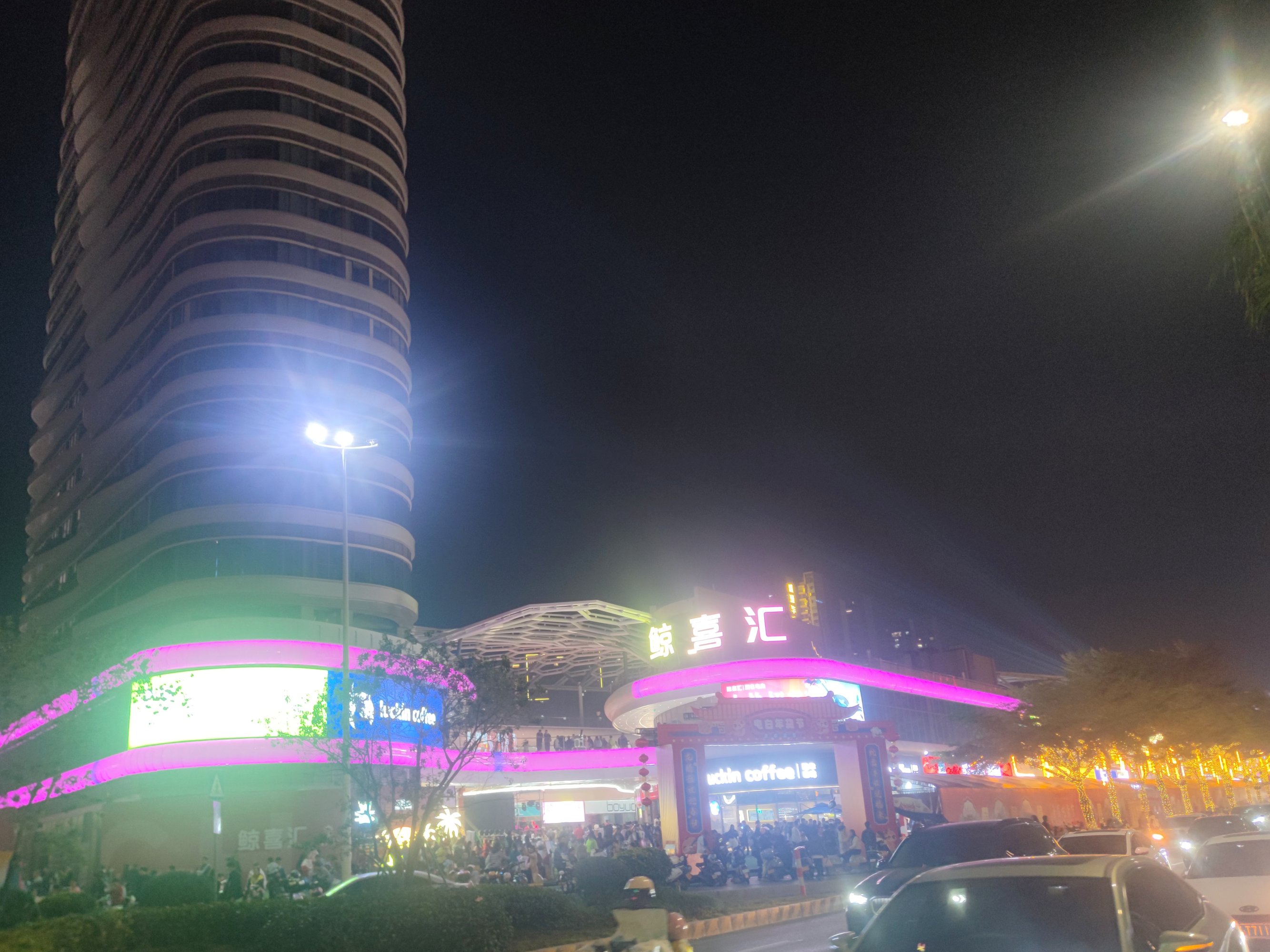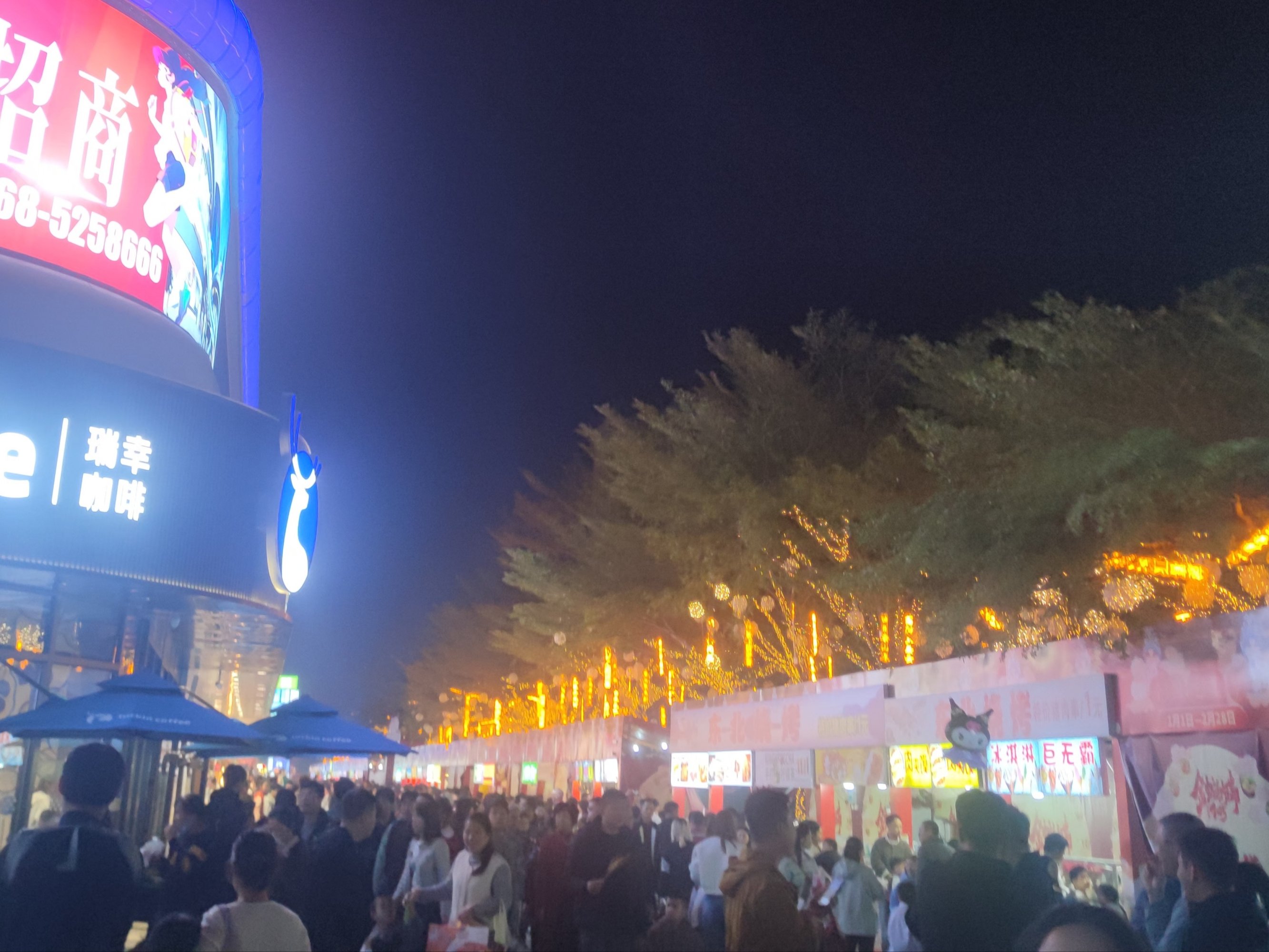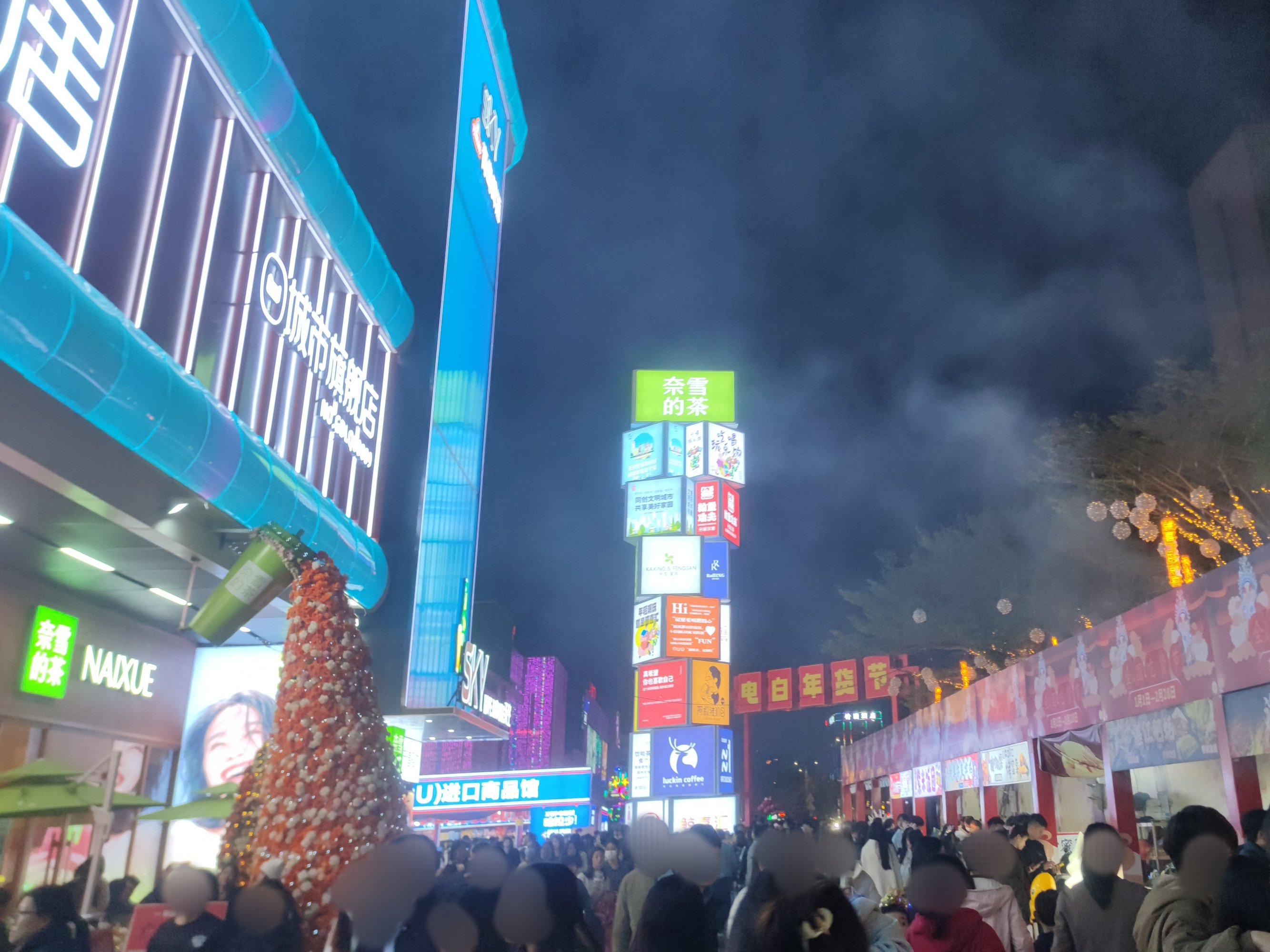 后又顺路返回经万达回到鲸喜汇处,而外围路街边,也有不少人在向水东大道行政中心方向走,我又想凑下拥挤的感觉,所以没走路肩,而是又混进人群中~里面的店铺,几乎都满座,有些只能等叫下号等~
