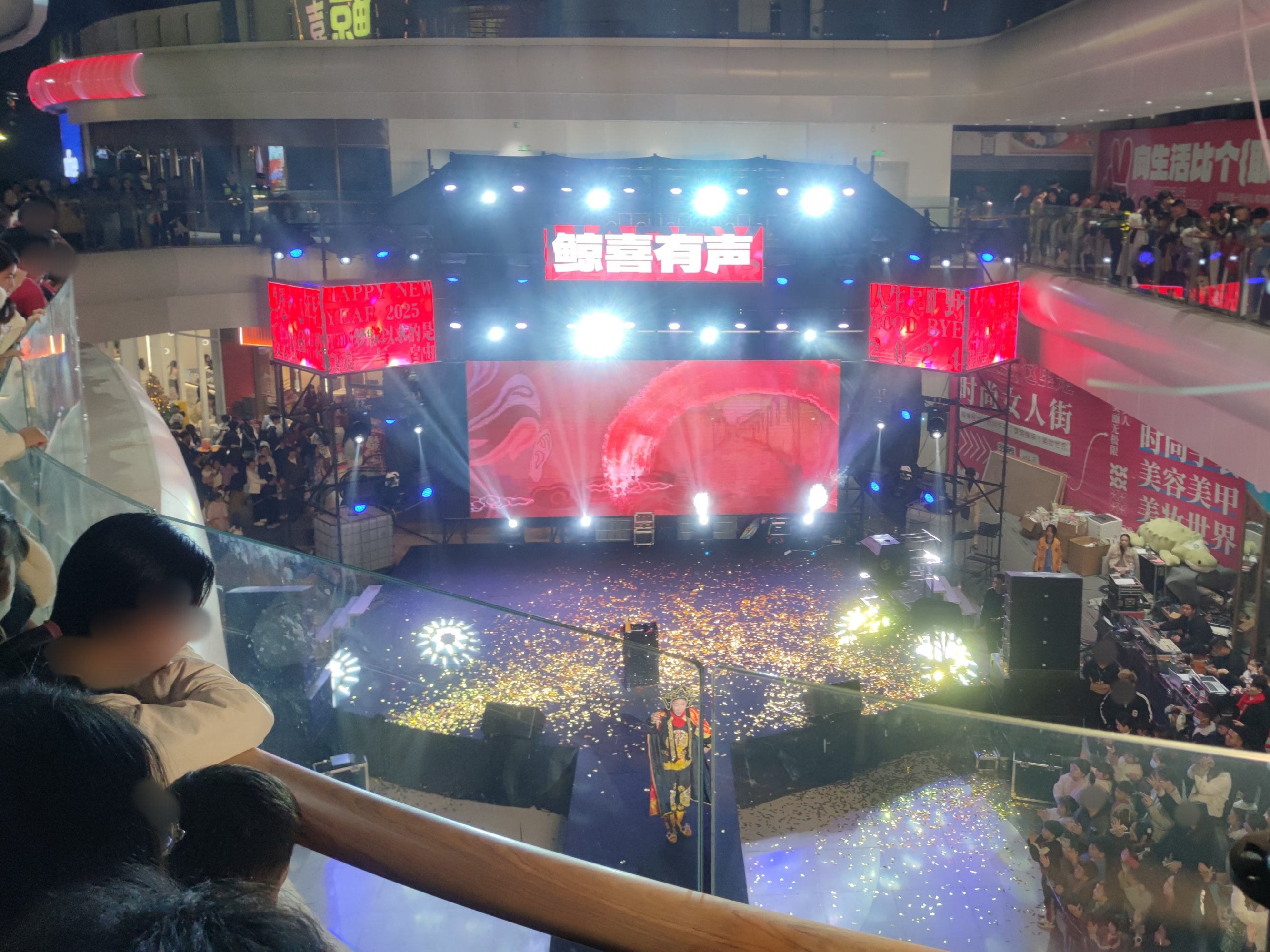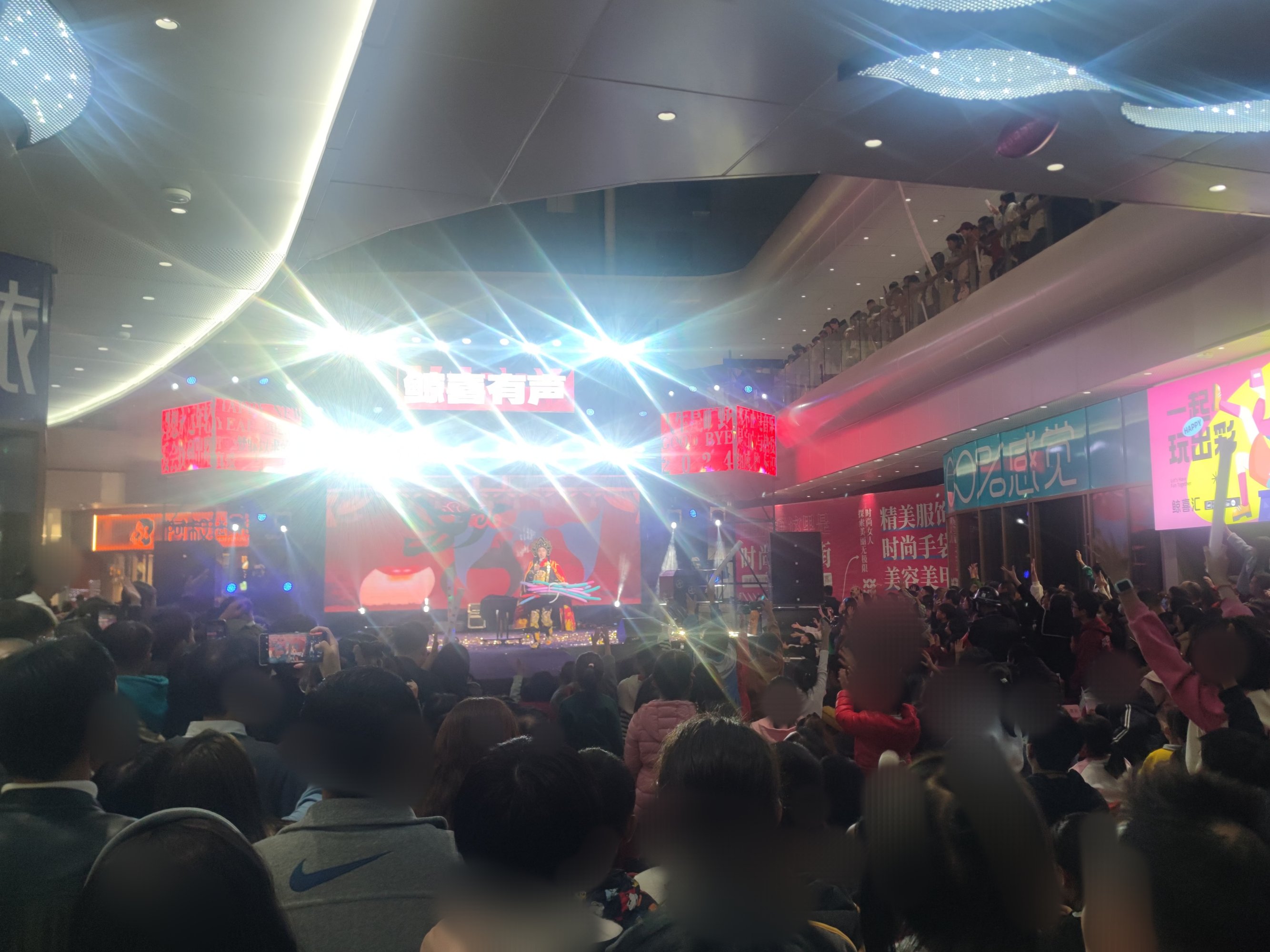 走到水东大道交界处,听见到有声音,所以就搭步梯上去看下,有舞台表演等~然后挤过人群走到外围二层,拍看下水东大道与迎宾大道交接交界路口,感觉也挺多车来车往,而步行班马线也有不少人在候灯穿行~