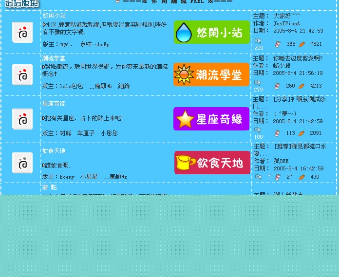 http://www.bbxz.com/ 芭比小镇 超适合年轻女生D网站/论坛 上面也有很多玩意 界面: [attachmentid=62580] 小镇设施: [attachmentid=62579] 版块: [attachmentid=62574] [attachmentid=62575] [attachmentid=62576] [attachmentid=62577] ............................... 本人强力推荐~~~