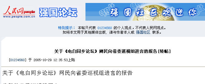 <b>《电白同乡论坛》网民向省巡视组进言(最终递交稿)</b> (3人在浏览)