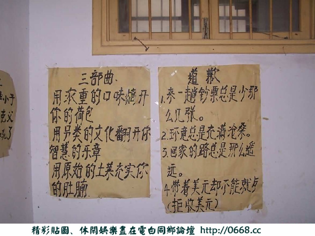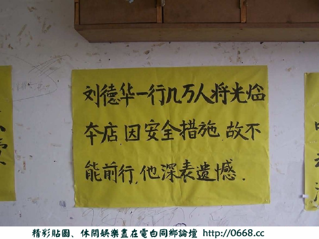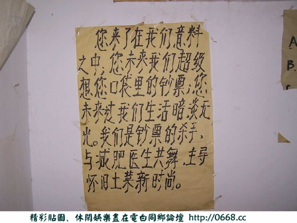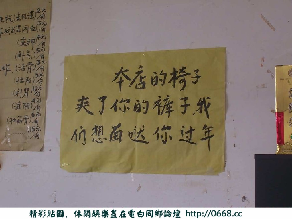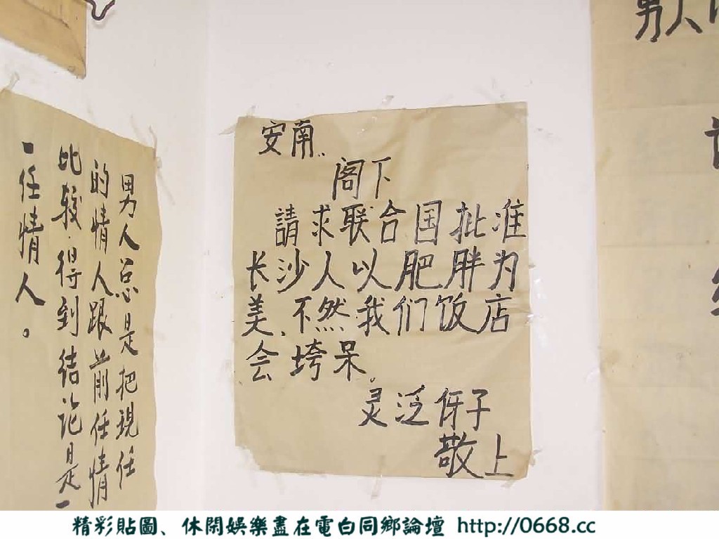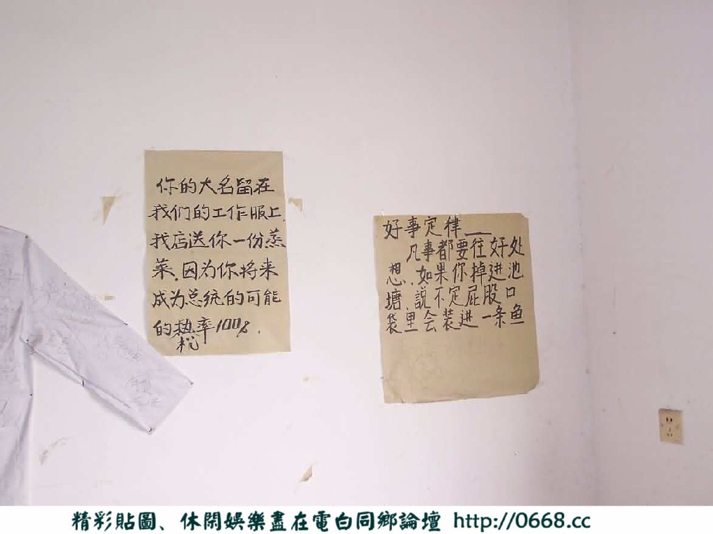 第一个是老板娘,因为刚去的时候 见有个人站在那里 便上前问 答曰:老板娘 后征得同意,终于获得首个照片,问及写的那些大字报。老板娘说是其与丈夫、儿子共同写的。