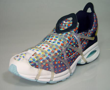 2000年,nike推出了Kukini系列的运动鞋,Air Kukini原名Cocoon,由NIKE总部的全球设计总监John Hoke设计,以茧状设计紧包足踝,提供最贴脚的足部支撑与保护,使用夸张的鲜艳颜色搭配作为基本色调。后掌采用air max的设计,而鞋面覆盖着特制的彩色TPU网状承托层,使得整个球鞋更富时尚气息,鞋面材料采用弹性纤维。独特的弹性设计使得鞋带的功能得到了简化,使得鞋子的穿脱更加方便简捷,同时又可以保证对脚的包裹。