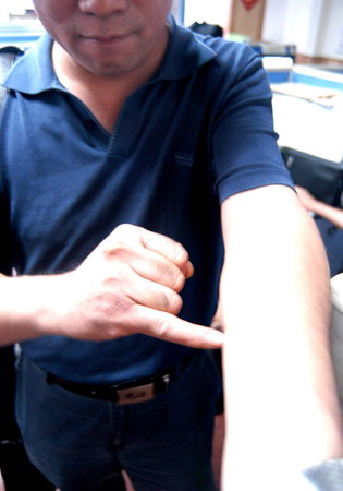 据胡某丈夫讲,胡某皮肤“长”字前后共有24天,每次出字后身体没有异常感觉。然而8月15日晚上10时许睡觉时,他突然发现妻子呼吸紧张,便将她拉起来,听见她嘴里不停地念叨着“海阔天空、辽阔草原”。等将她叫醒后,才发现她的两条胳膊上“长”出“海阔天空、辽阔草原”的字来。胡某有些惊悸地对我们说:“当晚我做了一个奇异的梦,梦见一个高个子男子,追着要在我身上写‘海阔天空、辽阔草原’,真是太害怕了。”