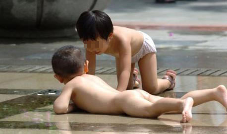 街头男女裸体戏水图