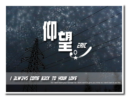 QUOTE(秋叶原 @ 2006年04月24日 Monday, 08:25 PM) .. [snapback]1138511[/snapback] 图片好看,字体颜色效果不好看.最好是放光的字体,感觉会好点...