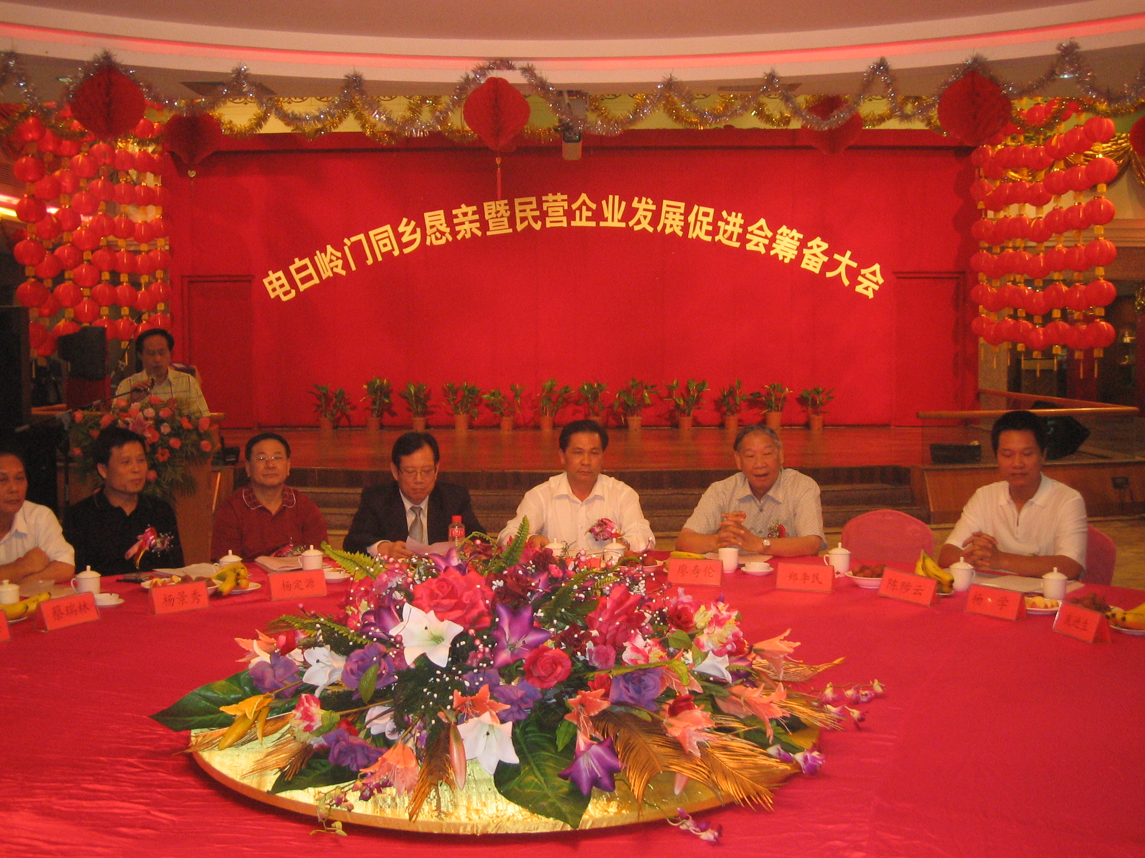 今天下午3点,电白岭门民营企业促进会在深圳银湖召开大会,宣告胜利成立.茂名市\电白县\岭门镇领导干部均来参加.广州\深圳\东莞等地的岭门籍商界\政界领袖人物近四百人参加了盛会.
