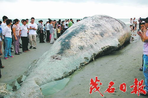 电白县渔政大队的人员闻讯后赶到现场了解情况,并对鲸鱼作了测量及资料记录。该大队一负责人说,根据初步掌握的情况看,这条搁浅的鲸鱼是抹香鲸,属国家一级海洋保护动物。南海海岸鲸鱼搁浅的现象十分罕见。昨天他们还与湛江海洋大学的专家教授到现场了解情况,因这条鲸鱼表皮已腐烂,加上牙齿及尾部已受损,认为没有制作标本价值,但会尽快处理好这头搁浅死亡的鲸鱼。
