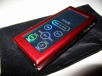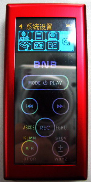 在外观方面,这个机子采用了红色为主调颜色,非常吸引。在主面板上,分别划分出两个部分,分别是控制和显示两个部分,而整体都构建在一块镜面设计的玻璃上,其显示部分采用了OLED显示技术,实现了光芒四射的超高亮度显示,采用这样的显示器件,有效地增强了显示的效果以及精度,摆脱了液晶显示器对比度低,颜色单调等缺点,使视觉效果有了进一步的改善。按键方面,采用最先进的触摸屏技术,使机子的操作更加流畅舒适。在机子的顶部,安装着两个音频接口,其中一个是线路输入,而另外一个是耳塞输出口,在耳机接口旁边,还有一个很小的开口,这个就是这个机子的麦克风部分。这个机子与电脑沟通的USB接口,被安排到机子的左侧,与它相对的右侧安排了两个开关,分别是锁机键和电源开关(也是充电控制开关)。所有按键以及接口的说明和机子使用的注意事项都放到了机子的底部,并且用非常精细的工艺把它做成外凸文字,这样的做工在MP3里面是非常罕见的,笔者自问使用了超过100台的MP3,这样的制作工艺还是头一次见到。[attachmentid=4764]
