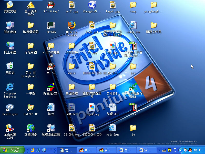 QUOTE(恋上苹果の梨 @ Dec 16 2004, 05:57 PM) 我的也是在办公室的! 哈哈! 不过那些QQ、QQ游戏、泡泡堂之类的我全部隐藏起来了! [attachmentid=5033] [snapback]121173[/snapback] 一看就知道你是做设计的!