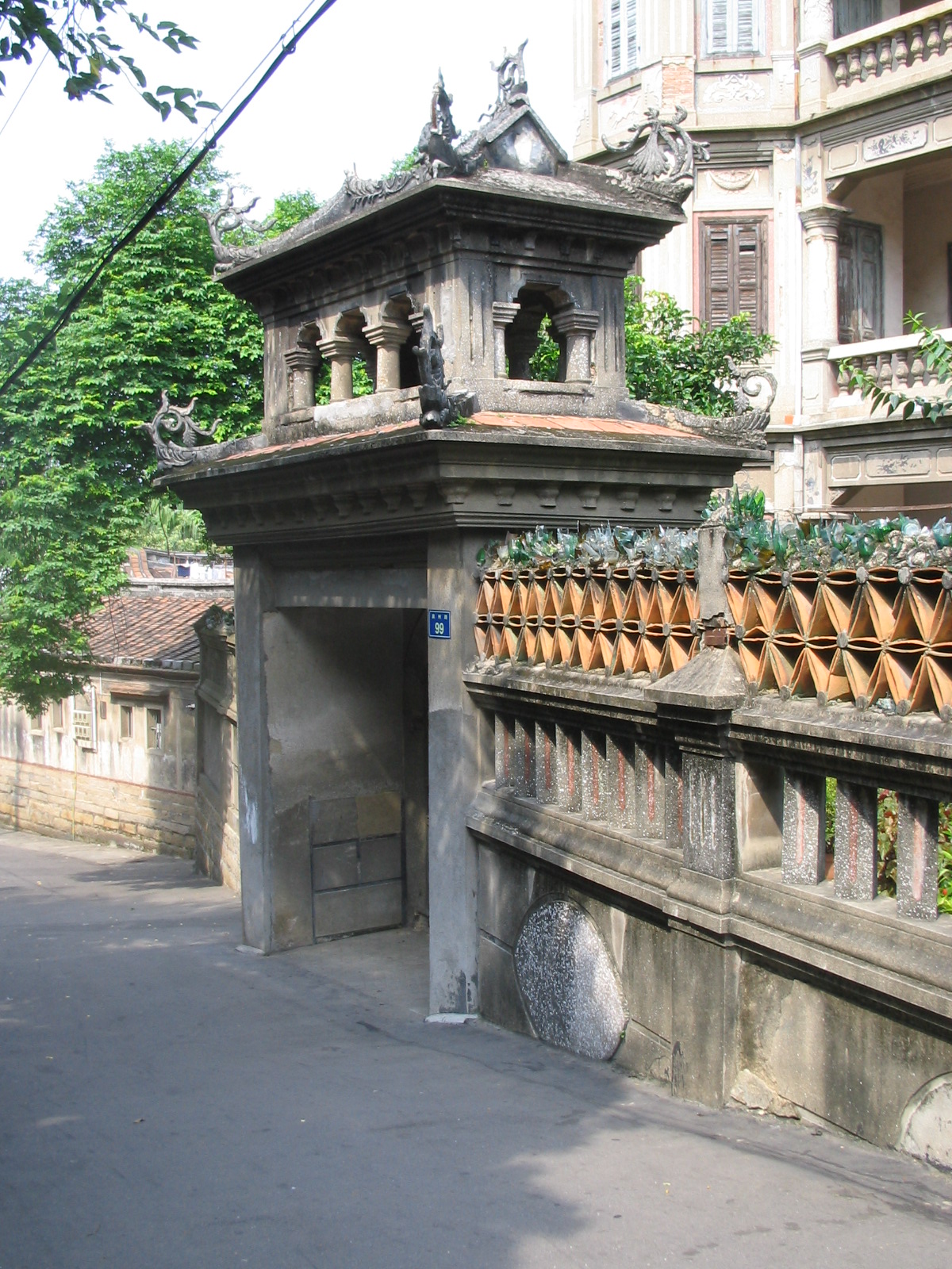 离镇区不到两公里的地方,是一个叫作蕉路的村庄。沿着河边的乡村公路行走,两边多是一些新建的砖楼,色彩艳丽,从一座老旧的石桥转入河的另一边,是一排低矮的房屋和树木,绳武楼就静静地伫立在那里。从外面看来,绳武楼没有气派,甚至显得有些粗陋。