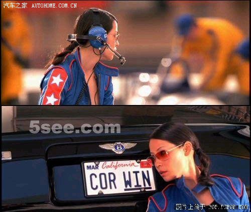 露茜・刘在赛场上的场景中,戴着耳机的她胸口显示没有穿内衣,当她走到宾利汽车前,里面却穿了一件黑色的内衣。