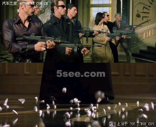 12、在向NEO射击的场景中,对方手中的武器各种各样,但是跌落在NEO身前的所有弹头全是9mm口径的。