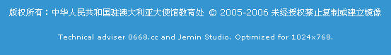 版权所有:中华人民共和国驻澳大利亚大使馆教育处 © 2005-2006 未经授权禁止复制或建立镜像