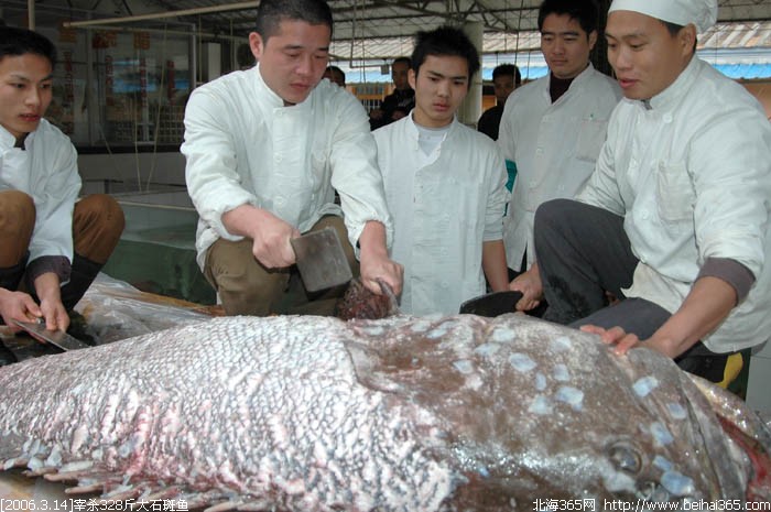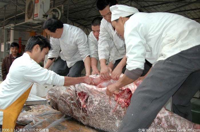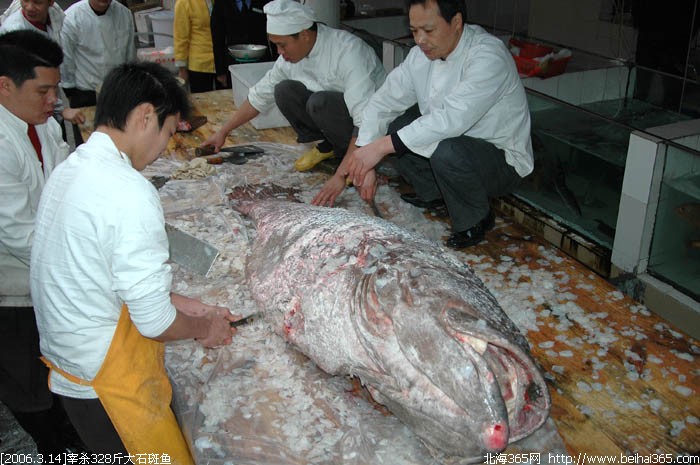 鱼精”328斤超级大石斑鱼--厨师现场宰杀 (1人在浏览)
