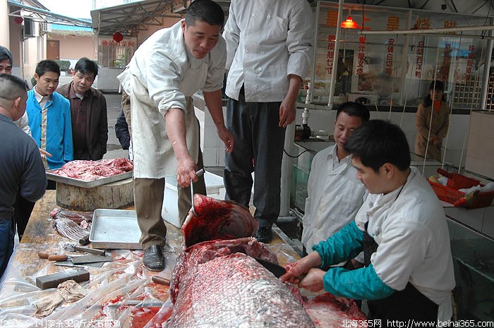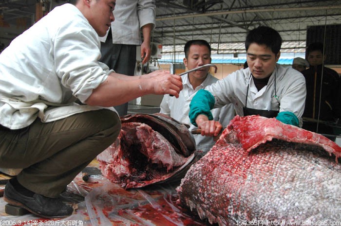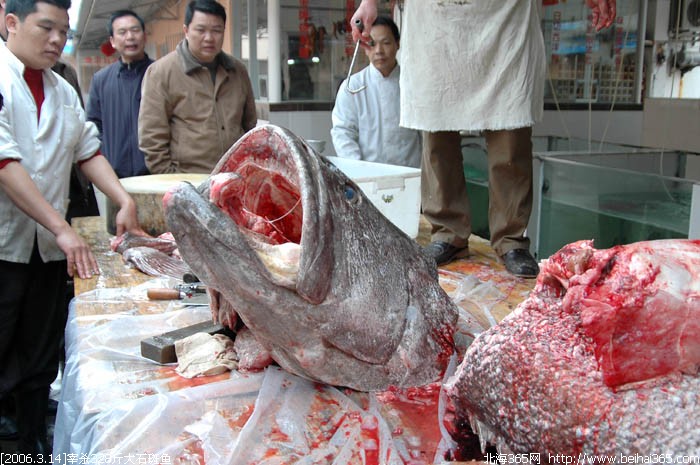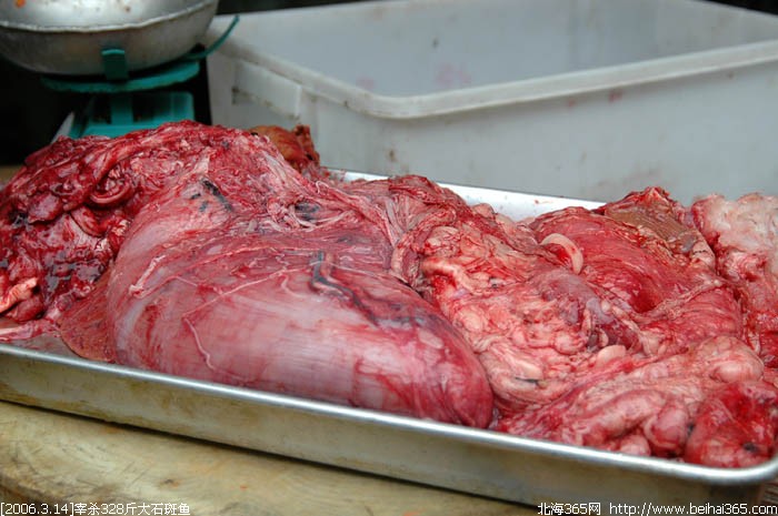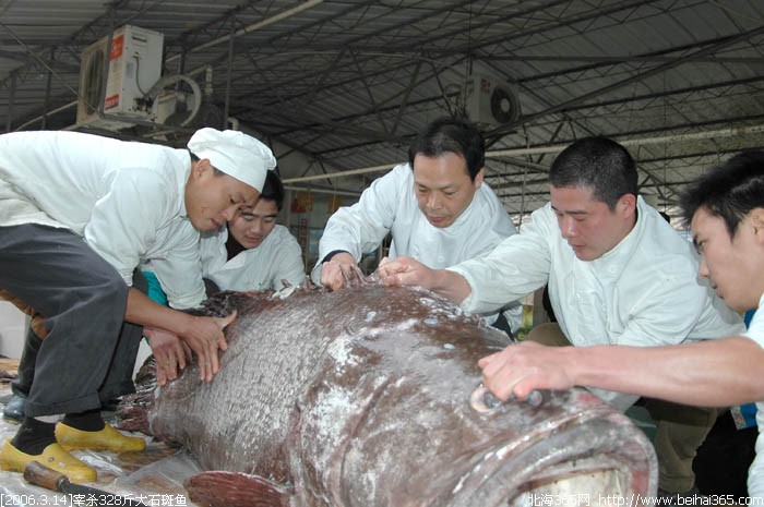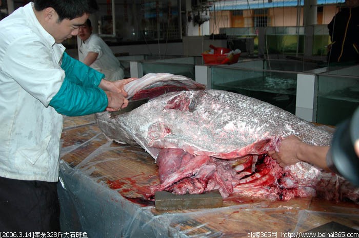 昨天在合浦捕获的328斤重超级大石斑鱼被北海肥佬时街购得。并于今天下午4点,现场宰杀,俺拍下了整个宰杀大鱼的过程,场面有点血腥,要做好心理准备哦。如果你耐心看完了整个帖子,说明你是很有胆识的人!