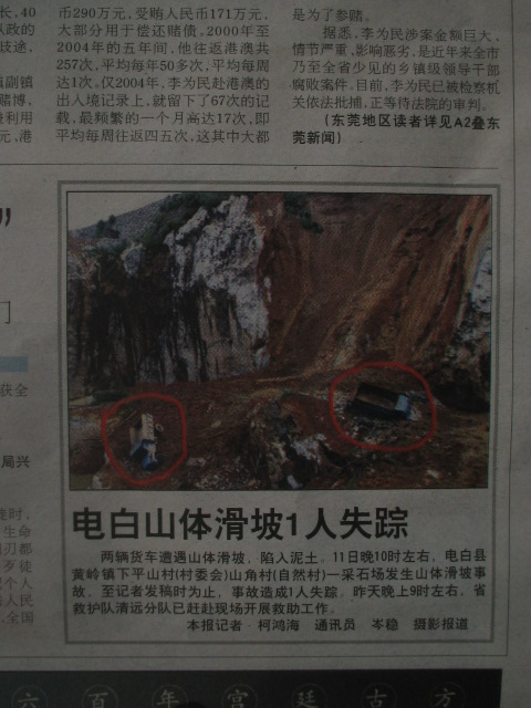 广东电白县建材厂石场塌方 五车被埋一人失踪