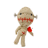 在台湾、韩国、日本都已经风行的巫毒娃娃只用一根线手工手工编成,个子小小的他以固有的灵气确实或多或少的发挥了它神奇的力量。