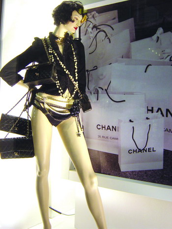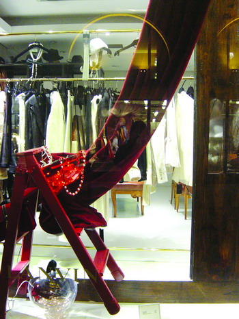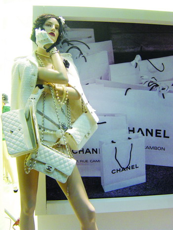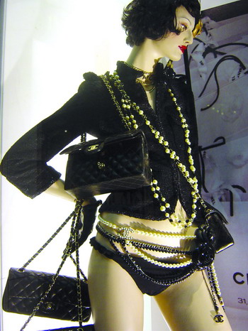 虽说伊夫・圣・洛朗已经退休,但是那种老派的格调依然存在,橱窗布置甚至被演绎成十足的“黑白片风格”,紫色的绒面背景衬托着品牌一直以来坚持的淡淡的高贵、高雅的品质。