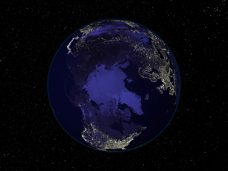 夜晚的各大洲和两极