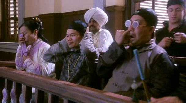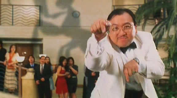 还有一个是《上海滩赌圣》中王晶演了一个四眼仔pol.ice,在黄炳耀研究怎么破解各种锁的时候做示范。