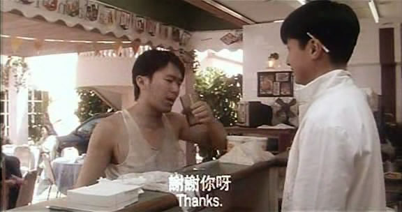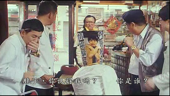 还有一个是《行运一条龙》里周星驰用纸袋套头问人认不认出来他,王晶这时进茶餐厅买东西。