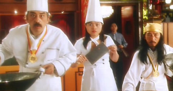 《食神》中演一个厨师的助手(最右面那个)。