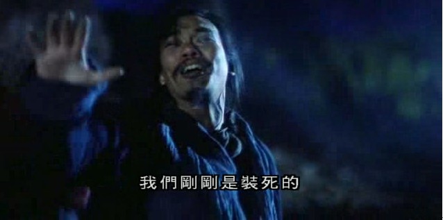 (说完,瞎子吐血而“死”,等至尊宝打算逃命时)至尊宝:喂,瞎子,你不是死了吗?瞎子:我们刚刚是装死的!至尊宝:我Kao!I服了You!
