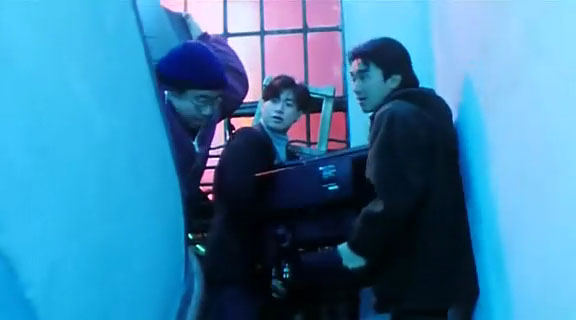 接下来,要着重提一下《新精武门》她饰演的银行职员九号窗肥妹,在这部戏里,打劫贞操这段是我认为最搞笑的一场戏,来,镜头回放。