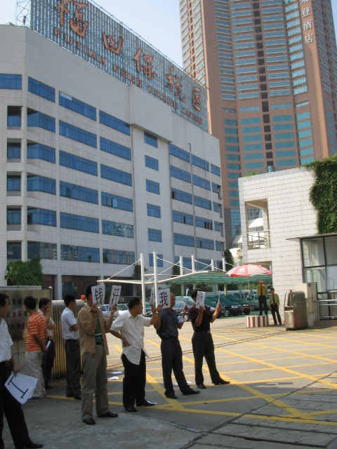 声援和关注在深圳福田保税区拖欠工资的电白农民工兄弟。 十三年前,来自电白的农民工,承接了深圳福田保税区管理局和台湾老板合资兴建的一栋大厦的基础桩地下工程。基础桩地下工程完工,至今未收到工程款。法院已判决赔偿。但至今无法执行,悲惨的农民工兄弟惟有在今天早上来到深圳福田保税区管理局讨要工钱。乐叔特赶去拍照。