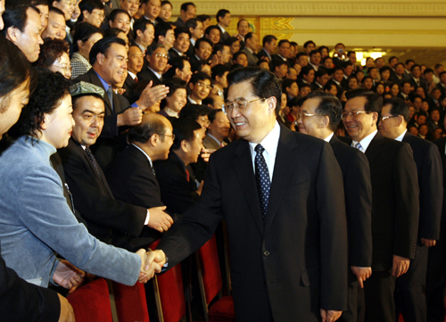 中国记协七届一次理事会开幕 胡锦涛会见代表