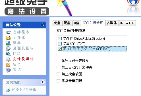 打开兔子--超级兔子魔法设置---文件及媒体---文件系统修复