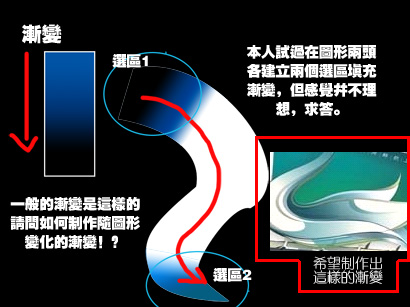 QUOTE(电白路人甲 @ 2007年01月21日 Sunday, 09:38 PM) 先画一个直线渐变然后用滤镜里的那个什么工具扭曲它`应该行吧 [snapback]1634854[/snapback] 虽然我也是这么想。。 但是听说会失真了